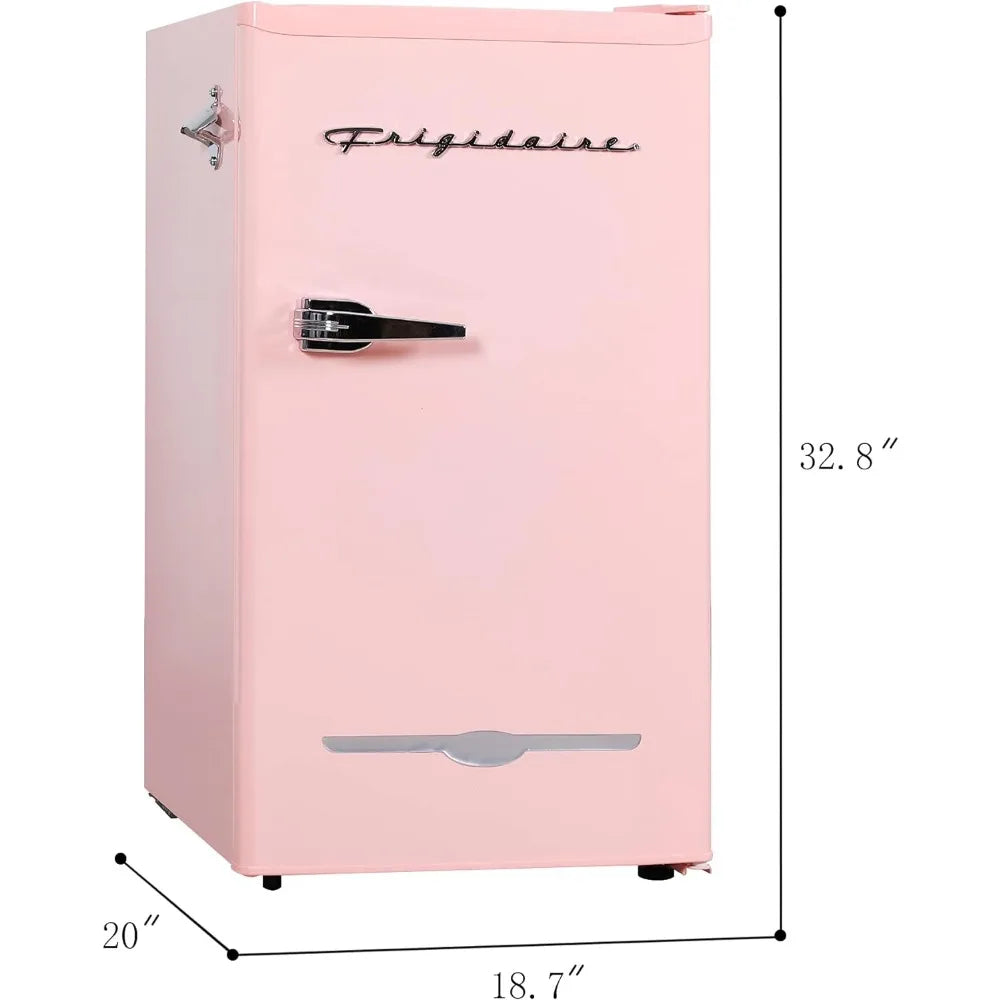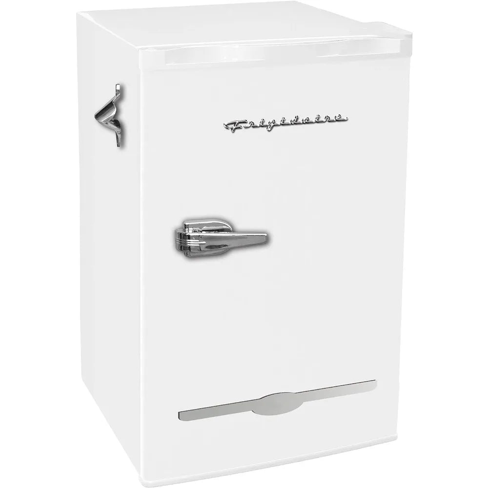 3.2 Cu Ft White Retro Bar Fridge, with Side Bottle Opener, Household Mini Refrigerator, Small Portable, Easy to Place
