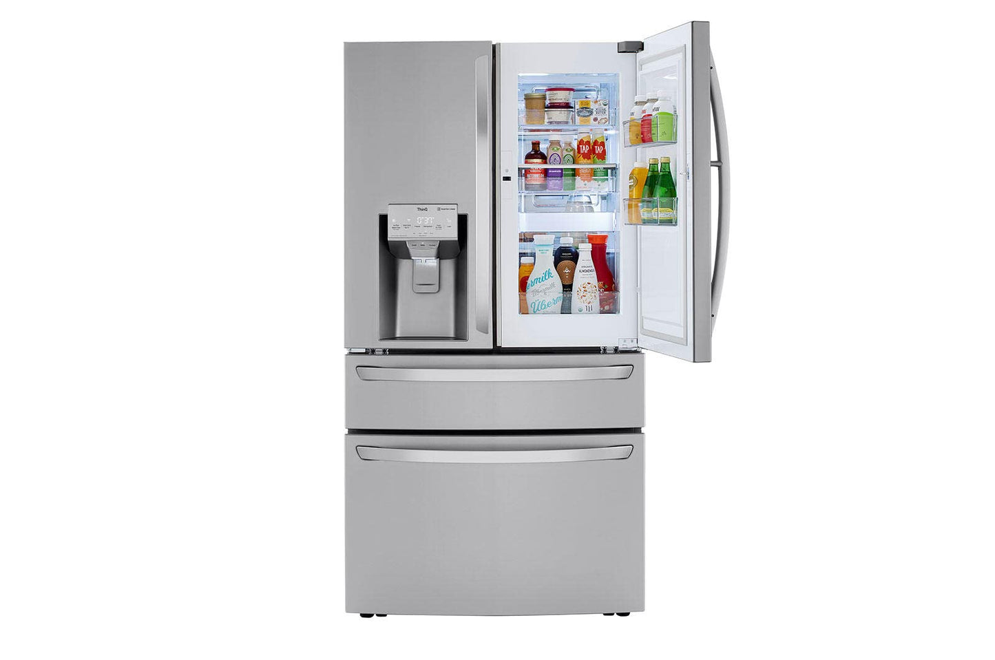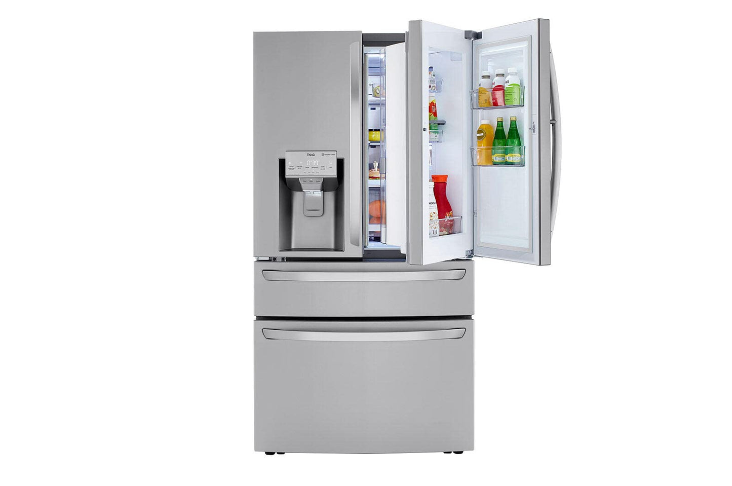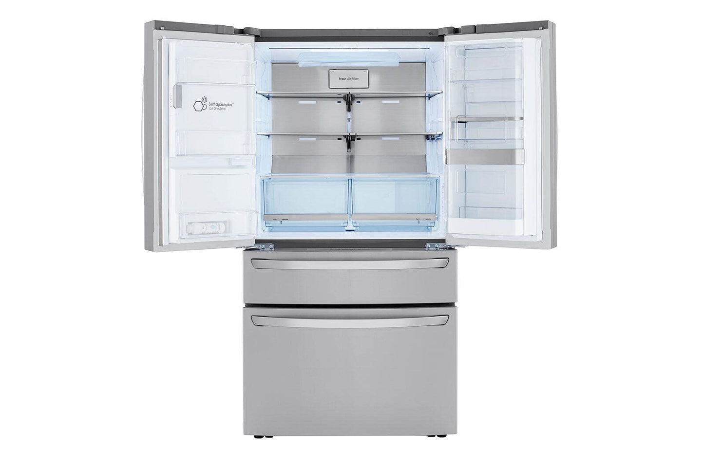 Details: 30 cu. ft. Capacity Door-in-Door® Full-Convert™ drawer with 5 temperature settings Tall Ice & Water Dispenser® with Measured Fill Dual Ice Maker with Craft Ice™ ThinQ® Technology with ThinQ Care Discover ThinQ Care within the ThinQ app -- proactive smart alerts to keep your appliances running smoothly. Get notifications about usage, maintenance, plus early diagnosis right on your smartphone. With 30 cu. ft. of more usable space*, you can save time and stock up on your club store fresh and frozen faves in one trip with room to store them all when you get home. *Compared to LG's standard width French door refrigerator. Get more usable space but keep it flexible with the Full-Convert™ Drawer – now with five temperature settings to fit your family's needs. Choose from Chilled Wine, Deli/Snacks, Cold Drinks, Meat/Seafood, and Freeze settings. Plus, adjustable dividers keep everything organized. Offering quick and easy access to favorite foods, the popular Door-in-Door® design gets even better with adjustable bins that smoothly glide up and down to fit snacks and drinks of all sizes. LG’s exclusive Craft Ice™ slow melting round ice maker automatically makes batches of three ice spheres per day without the work of time consuming molds. Give your beverages the perfect ice for next level entertaining, from craft cocktails & whiskey to soft drinks, lemonade, even iced coffee. To get even more Craft Ice™, activate Craft Ice+ in the ThinQ® App to make slow-melting ice twice as fast. *Shape and clarity of ice will be impacted when Craft Ice+ is activated; may vary with settings, home use and water supply. Finally, an ice & water dispenser that can accommodate just about any bottle size. With the convenient Measured Fill feature, you can also dispense exact amounts of filtered water in ounces (4,8,16, or 32). Ice makers are great, but not if it means you can't fit all of your food in the fridge. The Slim SpacePlus® Ice System provides more shelf space and allows even more space for door bins. *Standard width french door refrigerator, excludes other LG manufactured products. Part of the ThinQ® app, Smart Learner analyzes habits to anticipate temperature, ice & energy needs. Nothing is more frustrating than an appliance that doesn’t fit. We’ll help you find the right one for your space. Series LG Type French Door Door Type 4-Door Door-In-Door® with ColdSaver™ Panel Yes Total Capacity (cu.ft.) 29.50 Color PrintProof™ Stainless Steel Refrigerator (cu.ft.) 17.00 Full-Convert™ Drawer 3.60 Freezer (cu.ft.) 8.90 Total Capacity (cu.ft.) 29.50 Energy Consumption (kWh/Year) 799 ENERGY STAR® Qualified Yes Ice & Water Dispenser Yes Dispenser Type Integrated Ice & Water Dispenser Measured Fill Yes Daily Ice Production (lbs) 3.5 lbs IcePlus™ Production (lbs) 3.8 lbs Craft Ice™ Daily Ice Production 0.4 lbs Ice Storage Capacity (lbs) 3.0 + 3.6 lbs (Craft Ice 27 Sets) Ice System Slim SpacePlus® Dual Ice with Craft Ice™ Yes Dispenser Light Yes Water Filter LT1000P Linear Compressor Yes Smart Cooling Plus™ System Yes Door Cooling+ Yes Multi-Air Flow™ System Yes Temperature Sensors 9 Fresh Air Filter Yes Evaporator 2 Refrigerant R600a: Low Global Warming Potential, Zero Ozone Depletion Potential and More Energy Efficient Refrigerant than R134a Display Type Smooth Touch Control/White LED Temperature Controls Electronic/Digital Door Alarm Yes Child Lock Yes Auto Closing Door Hinge Yes Sabbath Mode Yes LoDecibel™ Quiet Operation Yes No. of Shelves 4 Split (3 Fixed + 1 Folding) Folding Shelf 1 Cantilevered Shelves Yes Shelf Construction Spill Protector™ Tempered Glass Crisper Bins 2 Humidity Crisper Cool Guard Yes Refrigerator Light Micro Surface LED Dividers Yes Temperature Range (°F) -7, 29, 33, 37, 41 Handle Type SmartPull™ Door-In-Door® with ColdSaver™ Panel Yes Adjustable Door-in-Door® Bins Yes No. of Bins 8 Door Bin Construction 1 Piece (clear) Door Type Pull Drawer Drawers 2-Tier Organization DuraBase™ Solid Drawer Base Yes Drawer Divider Yes Ice Bin/In-Door Ice Icemaker & Ice bin in the freezer Freezer Light Premium LED Freezer Handle SmartPull™ Handle Wi-Fi Enabled Yes ThinQ Care Yes Works with Google Assistant and Amazon Alexa SmartDiagnosis™ Yes Contour Door Yes Hidden Hinges Yes Surface Smooth Fingerprint & Smudge Resistant Exterior Yes Handles Matching Commercial Handles All Available Colors PrintProof™ Stainless Steel, PrintProof™ Black Stainless Steel Blowing Agent Cyclopentane - Low Global Warming Potential, and Zero Ozone Depletion Potential Blowing Agent Width 35 3/4" Height to Top of Door Hinge 70 1/4" Depth with Handles 38 1/8" Width (Door Open 90˚ without Handle) 40" Case Edge Clearance (Door Fully Open) 31 7/8" Width (Door Open 90˚ with Handle) 45" Width (Door Fully Open without Handle) 67 1/2" Door Edge Clearance with Handle 4 5/8" Door Edge Clearance without Handle 2 1/4" Height to Top of Case 69 1/8" Height (Floor to Top of Drawer) 33 1/4" Depth without Door 31" Depth without Handles 35 3/4" Depth (to Hinge Cover) 23 3/4