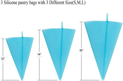 - Styrdy & Easy to Use - Durable and long lasting, easy to assemble, clean and dishwasher safe. Silicon pastry bags can support different color icing while decorating cakes, the couplers made it mess free to switch tips. Easy to swap out the tips to try out different designs.