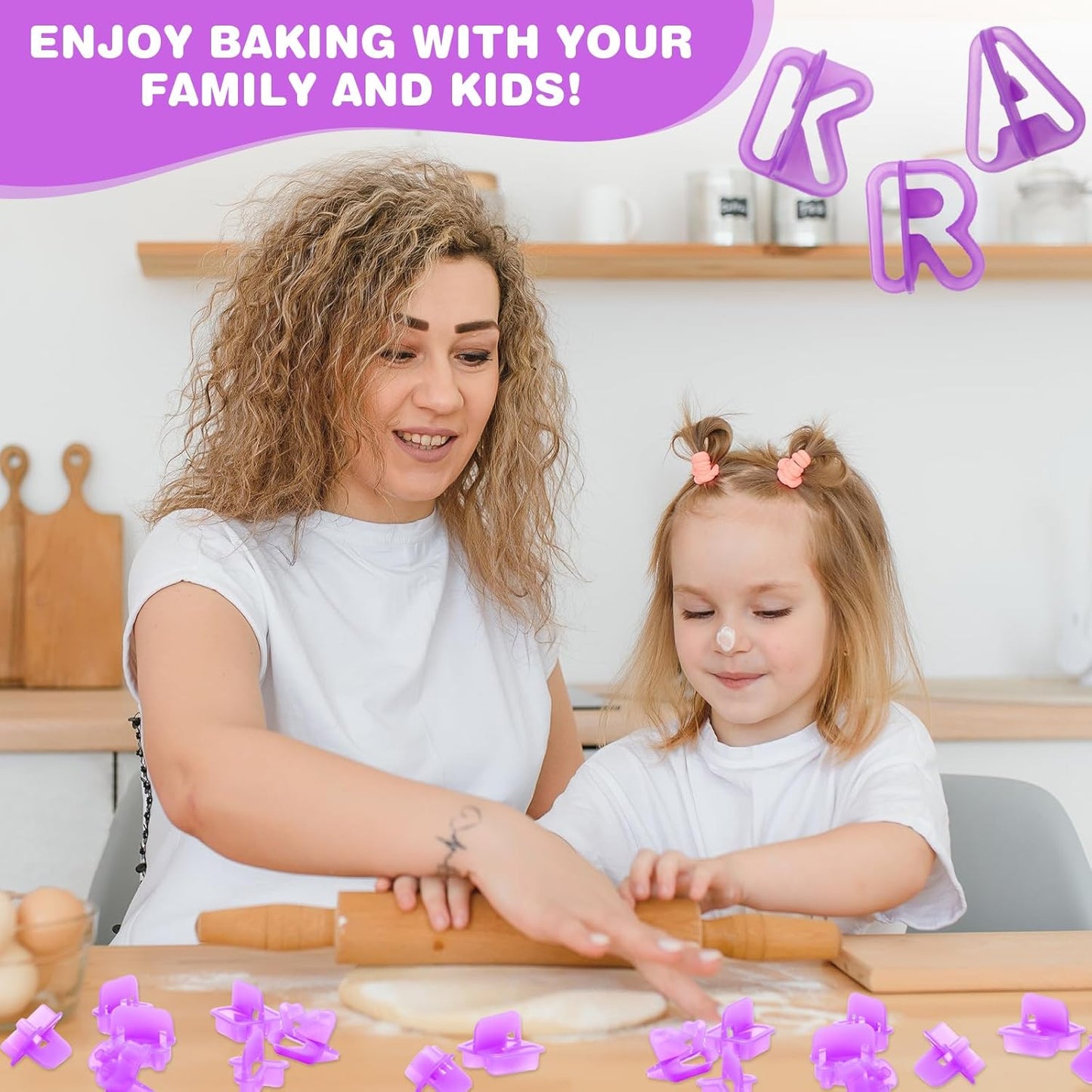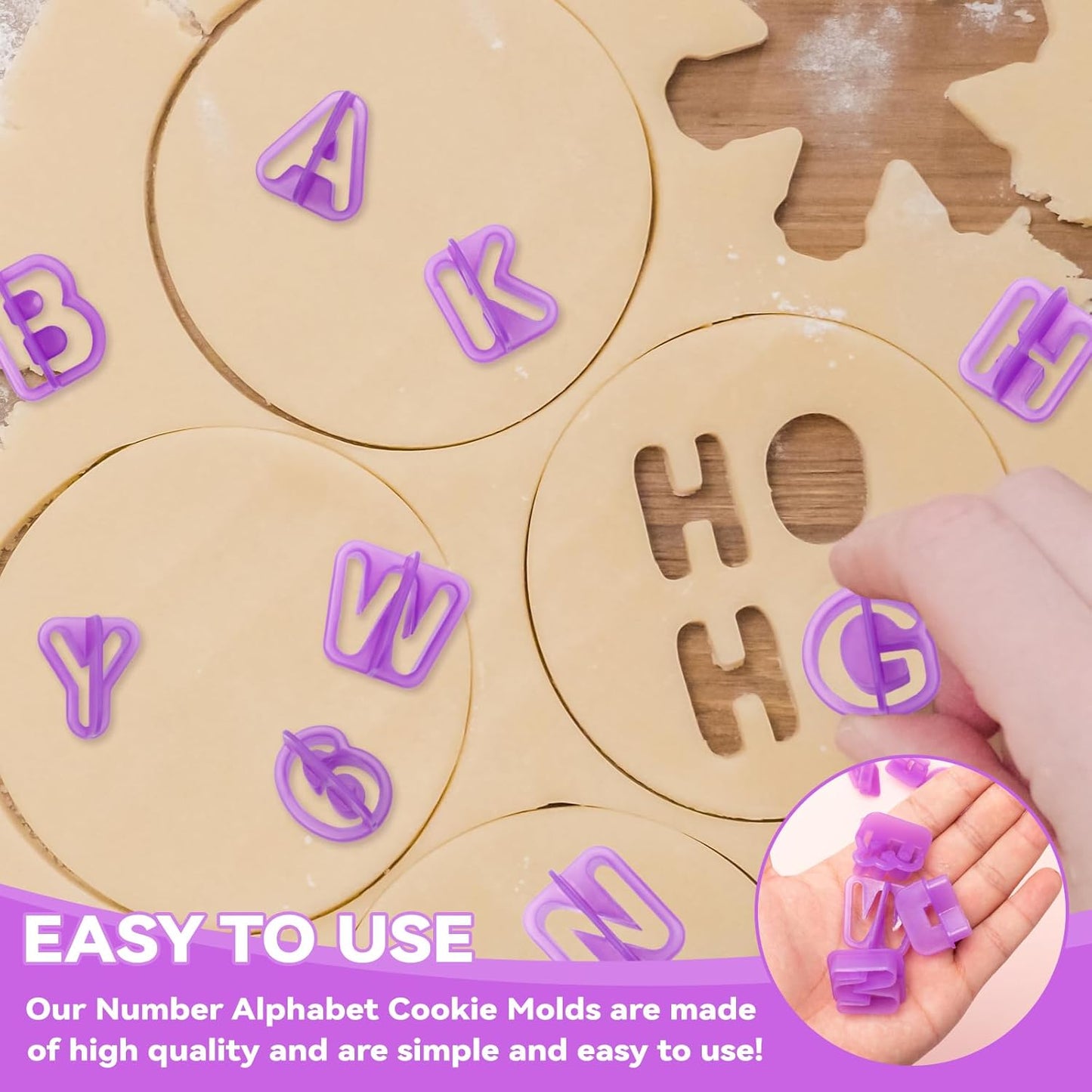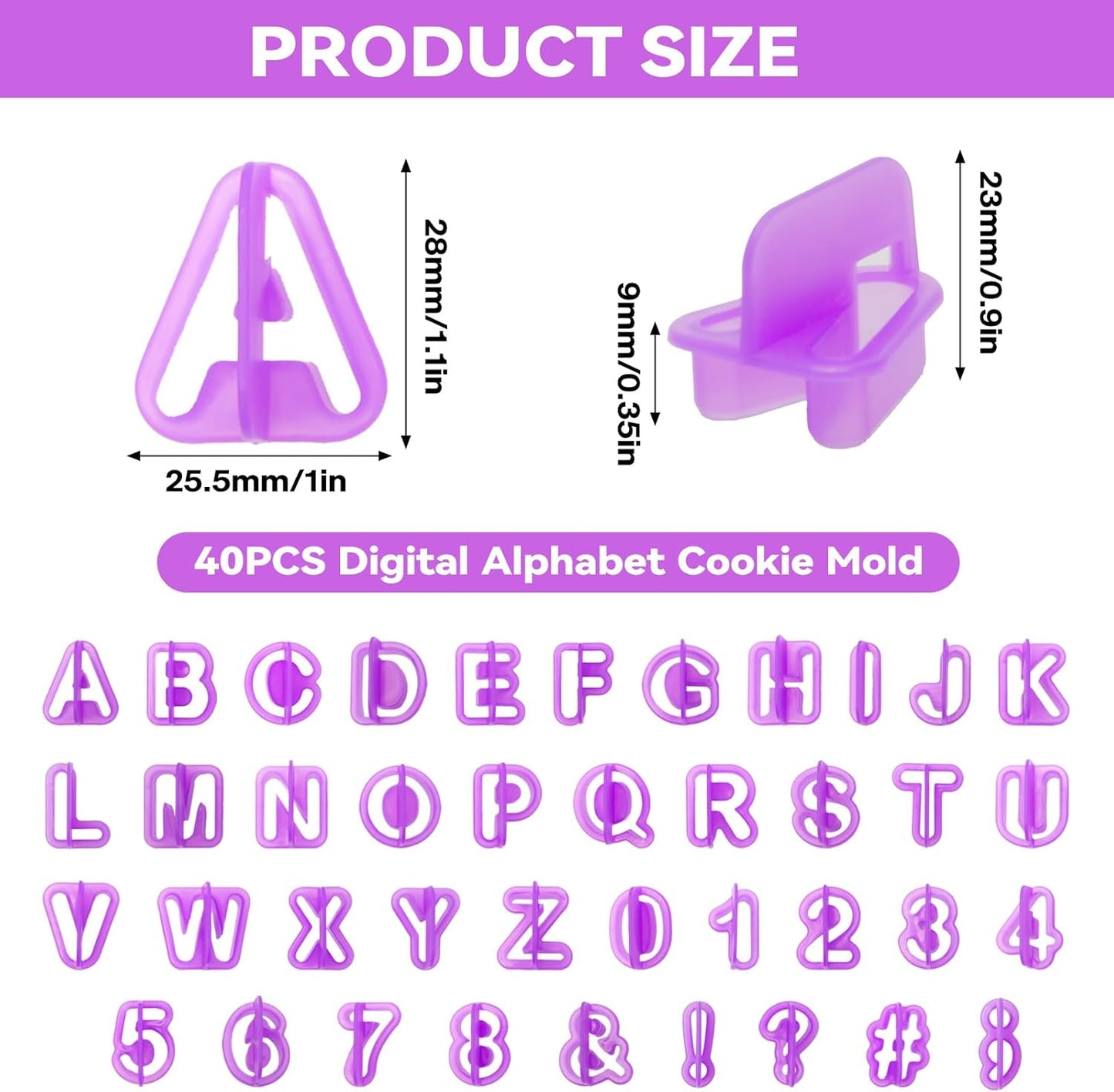 - Fondant Letter Cutters Set: You will 40 pcs fondant cutters in purple color for DIY baking, including 26 pcs alphabet cookie cutters, 9 pcs number cookie cutters and 5 pcs symbol cookie cutters (Note: 6 can be used for 9)
