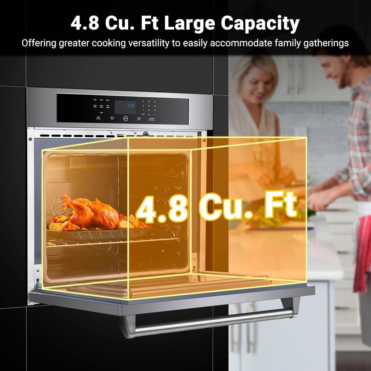 - 【Time & Energy Efficiency】With 4.8Cu. Ft. capacity, our single wall ovens can simultaneously handle different cooking food such as pizza, chicken, bread, cake, beef for entertaining your guests or family, saving your time greatly. Designed with energy-saving features, the wall oven helps you reduce energy consumption without compromising on performance, leading to cost savings on your energy bills.