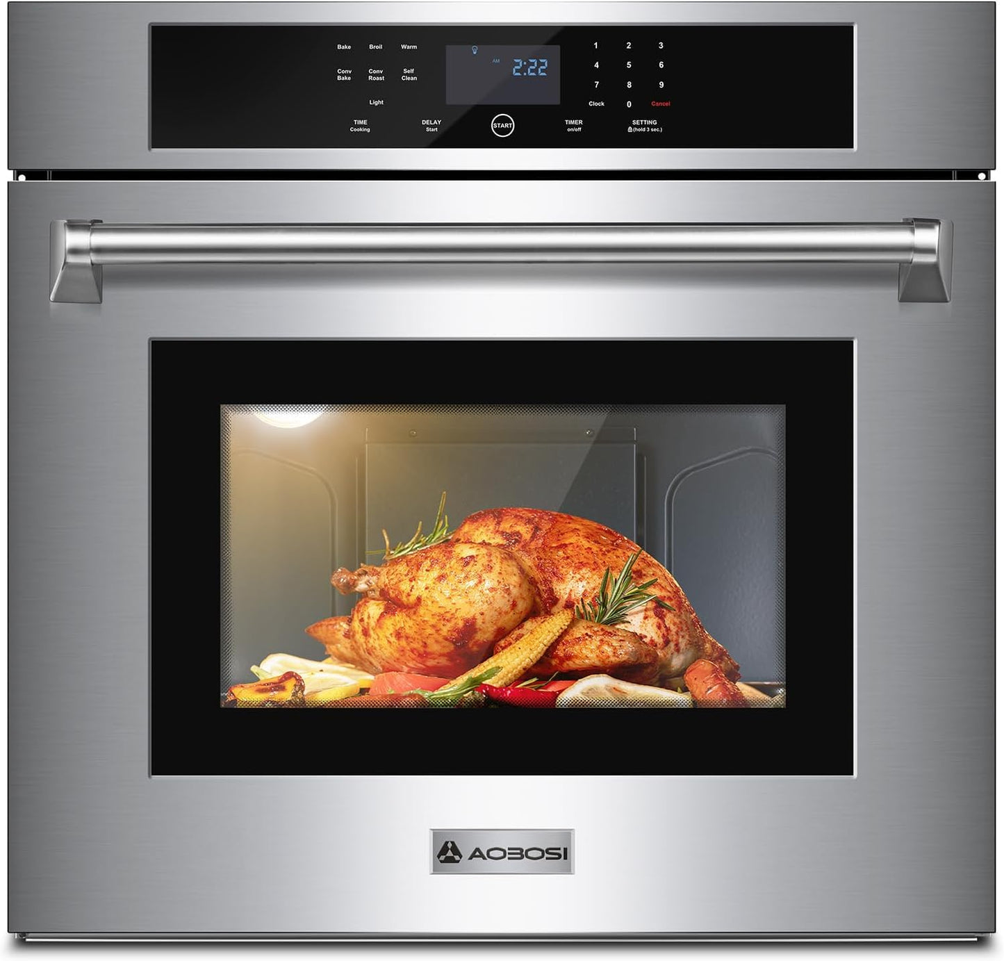 AAOBOSI Wall Oven 30 inch Single Wall Ovens Electric Built-in Convection Oven, 3800W, 4.8 Cu. Ft. Broil Bake Roast Function, LED Display, Touch Control, Safety Lock, Timer for Kitchen Cabinetry