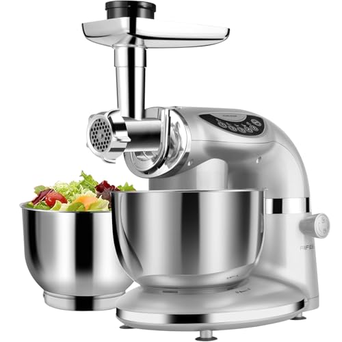 Aifeel Stand Mixer, 8.5QT+ 6QT Two Stainless Steel Bowls Electric Food Mixer, 7 in 1 Multifunctional Kitchen Mixer with Dough Hook, Whisk, Beater, Meat Grinder,Pasta & Cookie Maker-Silver