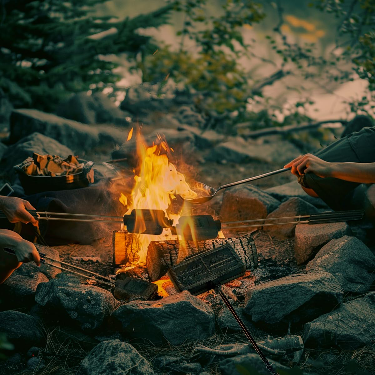 • Durable cast-iron head with easy open hinge, withstand the high heat. Great way to cook toasted sandwiches, pie and grilling meat over an open fire!