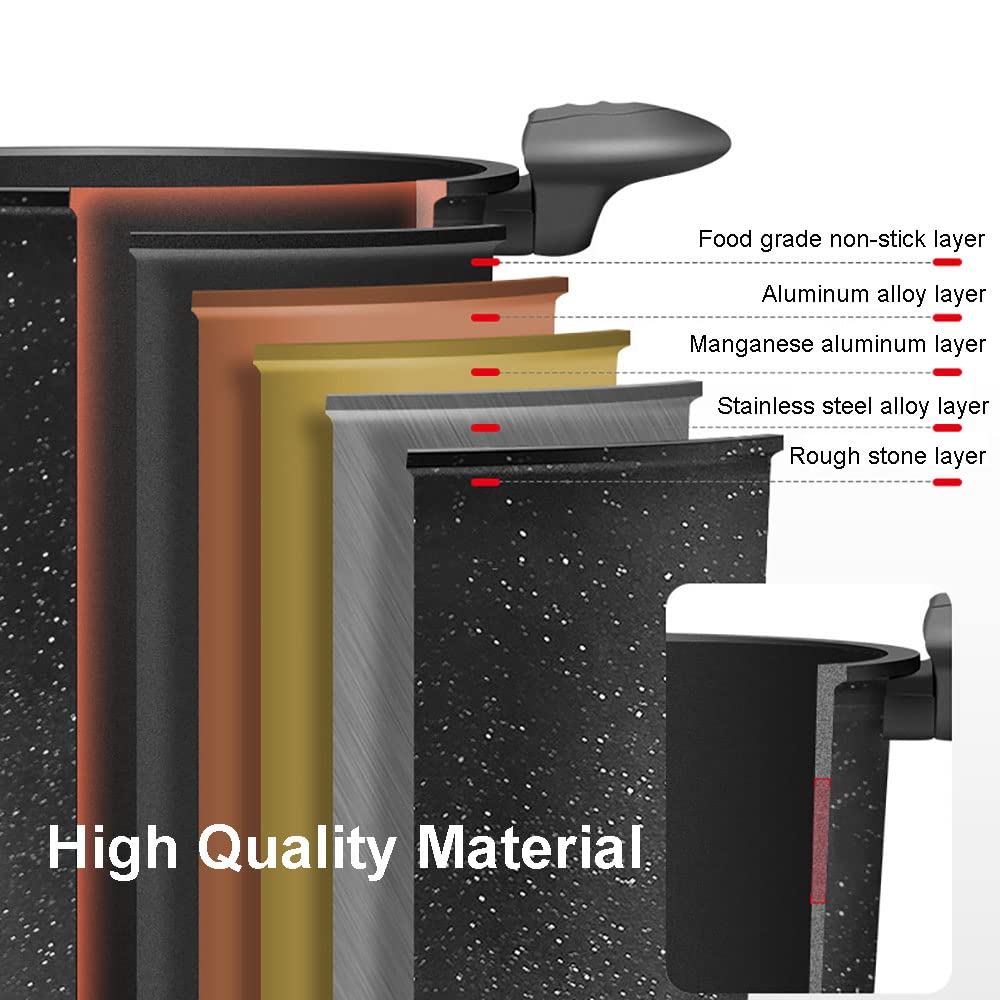 - High-quality material: The outside of the reversible cooking pot is thickened with 5 layers of alloy material, which is resistant to high temperature. The micro pressure cooker lid and snap-on handle easily lock in moisture for delicious, juicy dishes.
