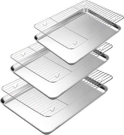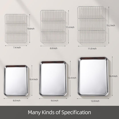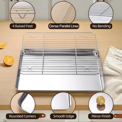 - HEALTHY MATERIAL:Amrules baking pans and racks are made from high quality stainless steel, which is rust and warp resistant and durable. There is no chemical coating and any other toxic materials, safe for your family’s daily use.