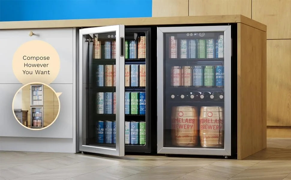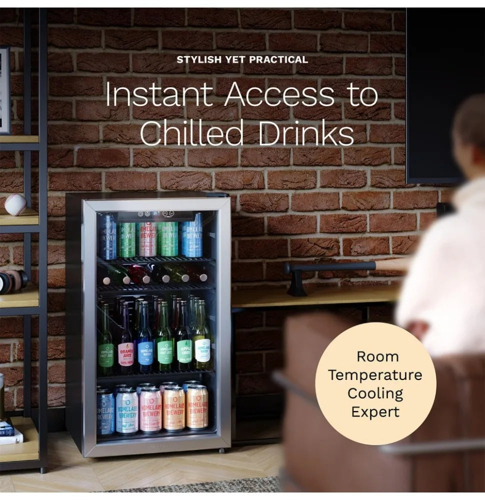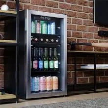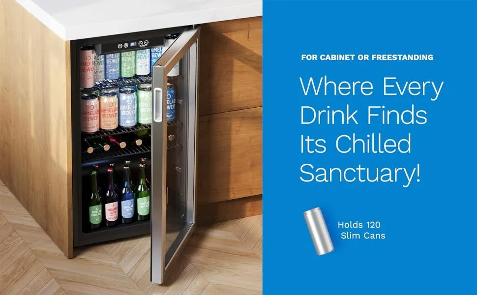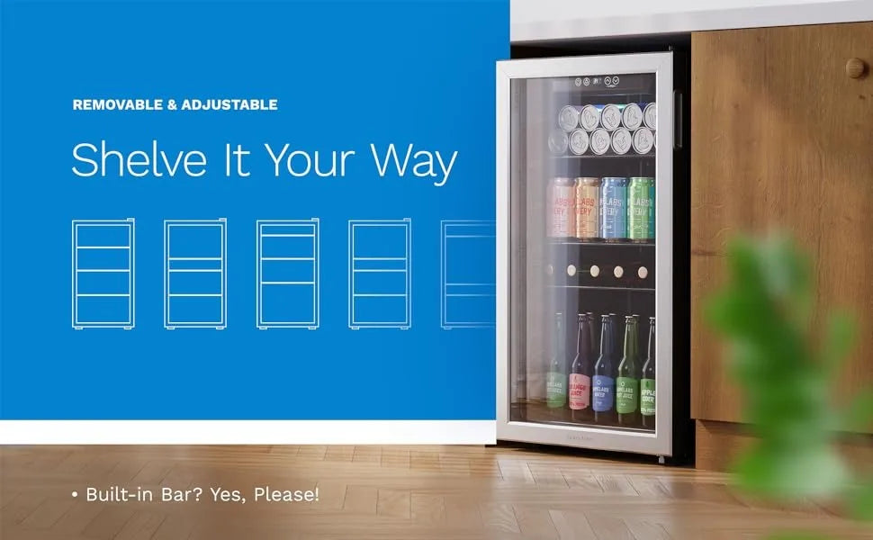 - LARGE CAPACITY DRINKS DISPENSER - Our beverage fridge is always ready for a party, with its large internal storage capacity and adjustable shelving. Comes equipped with 3 removable chrome wire shelves to accommodate liquid containers of all shapes and sizes. Customize your drinks organization for a premium home bar experience. Intelligent sizing also enables undercounter installation for slick integration