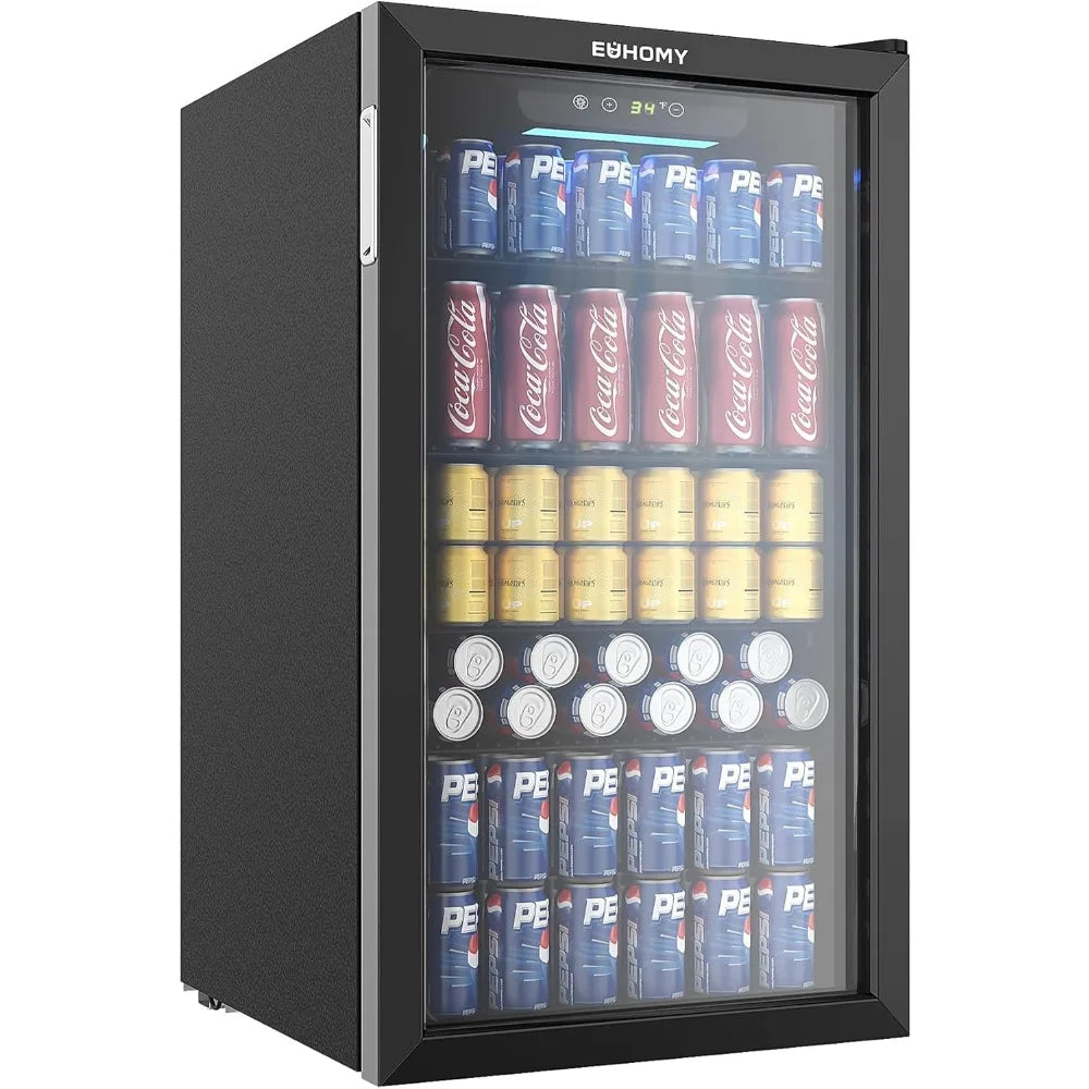 Beverage Refrigerator and Cooler, 126 Can Mini fridge with Glass Door, Small Refrigerator with Adjustable Shelves for Soda Beer