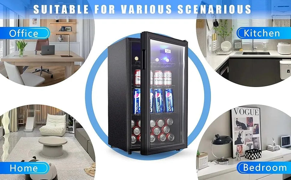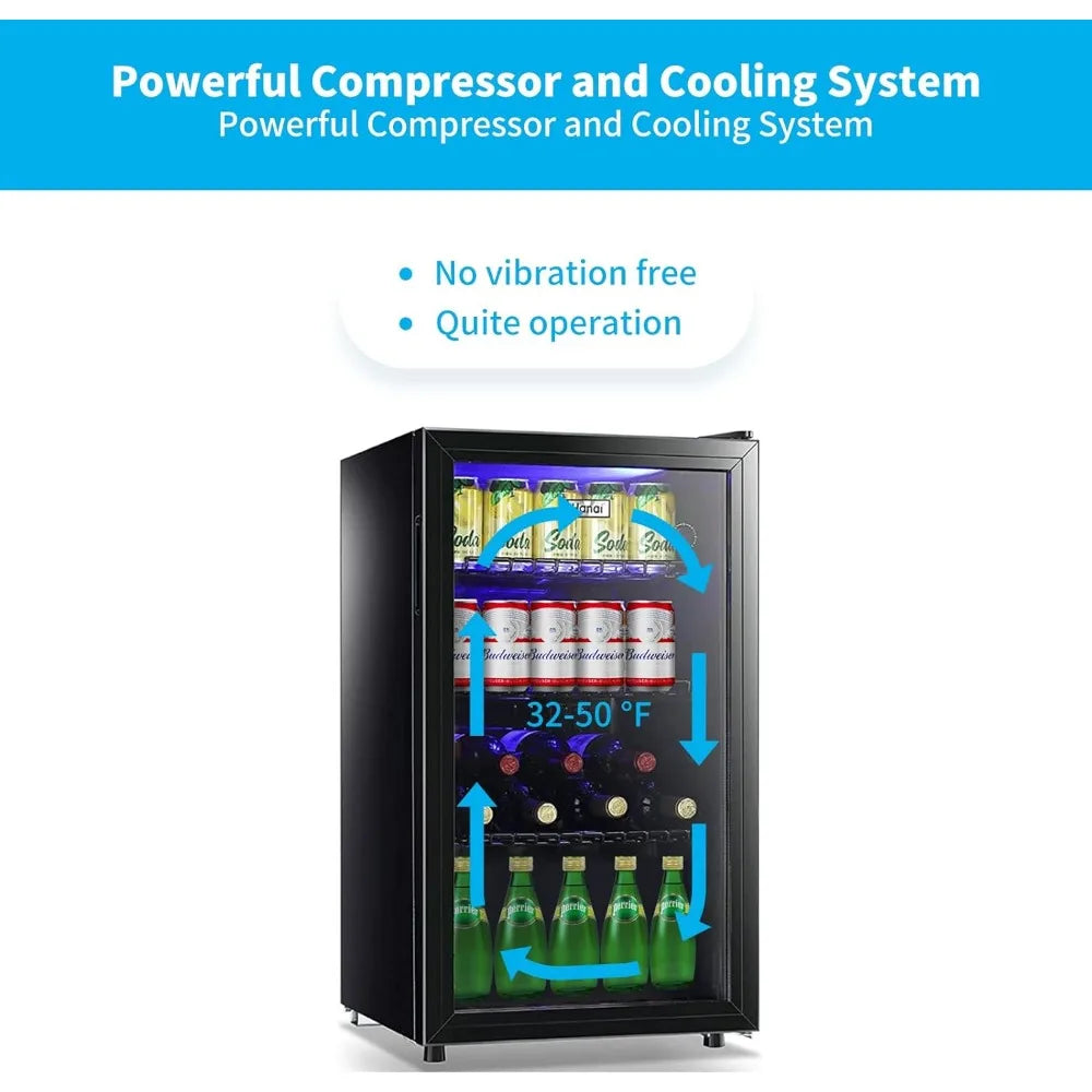 Beverage Refrigerators 120-Can Small Mini Fridge for Home or Bar with Glass Door and Adjustable Removable Shelves, 3.5 Cu.Ft.