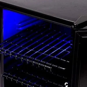 - 🍹【LED interior light】With its reinforced glass door with air tight seal and help to maintain an ideal humidity level. Blue soft LED interior light illuminates for easy, nighttime selection of your favorite chilled drink.