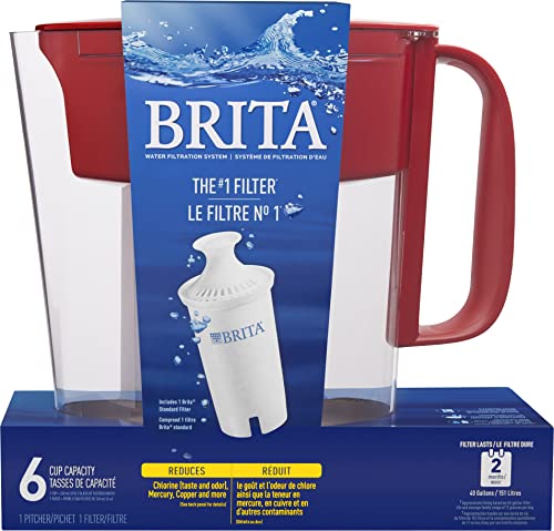 Details: Drink healthier, great-tasting tap water with the BPA-free, small 6-cup Brita Metro Water Filter Pitcher. This filter water pitcher cuts the taste and odor of chlorine, plus it reduces copper, cadmium and mercury impurities, to deliver great-tasting drinking water. By switching to this Brita filter, you can replace 1,800 single-use plastic water bottles a year to stay hydrated, save money and reduce plastic waste. This filtered water pitcher features an easy-fill locking lid that helps prevent unwanted spills and allows for effortless pouring and refilling. An electronic filter indicator on this water purifier pitcher lets you know when it is time to change the Brita filter. This water purifier pitcher comes with one Standard water filter, but it's compatible with both Elite and Standard water filters. Replace your Elite filter after 120 gallons or about every six months, or replace your Standard filter after 40 gallons or about every two months. Get great taste, less waste and more savings from Brita.
