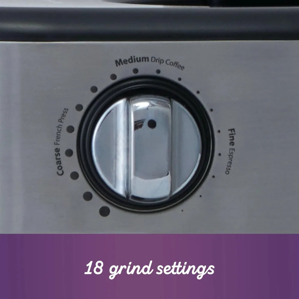 - 18-CUP CAPACITY: The 2-18 cup selector allows you to grind only what you need, for fresh coffee grounds every time