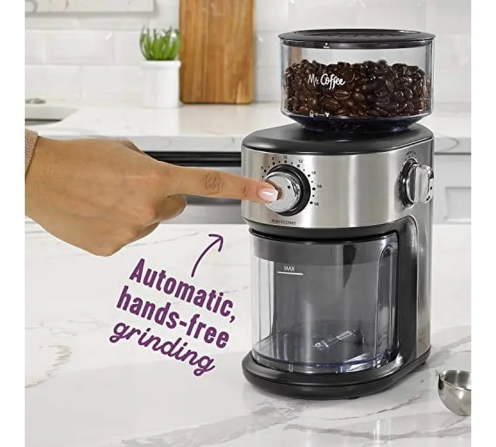 Cafe Grind 18 Cup Automatic Burr Grinder, Stainless Steel, Coffee Grinder, Small and Easy to Carry Electric Grinder