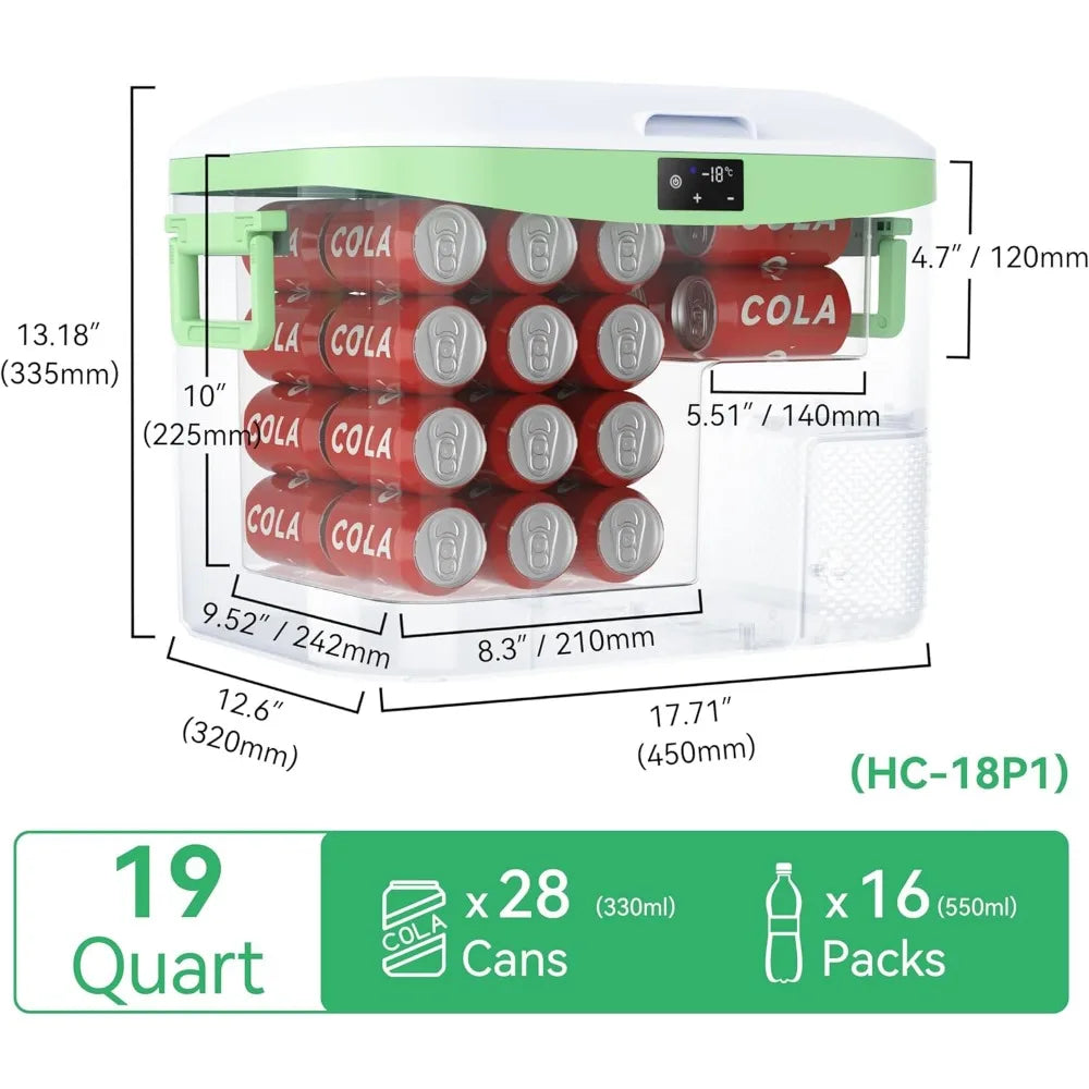 Car Fridge Portable 12V Refrigerator 19 Quart (18 Liter) 12 Volt Freezer Compressor Cooler 12V/24V DC 110~240 V AC for Truck RV