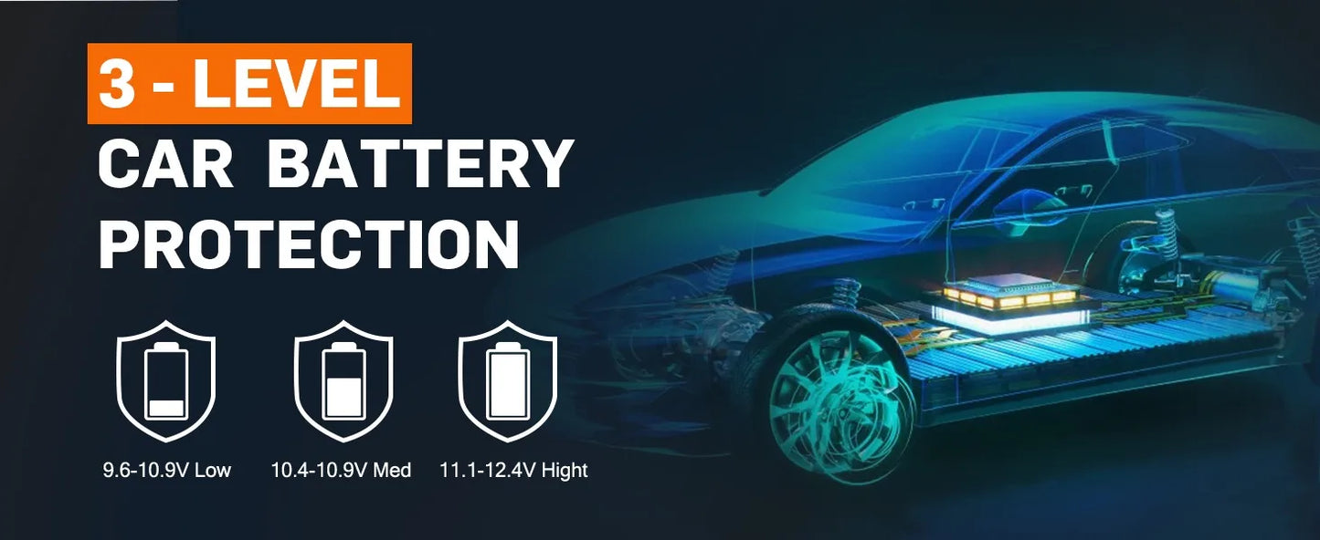 - SMART BATTERY PROTECTION&HOME/CAR DUAL-USE - Car fridge 12v is equipped with 110/240V AC and 12/24V DC adapters, which can be used at home or in the car. The RV refrigerator provides three (low, medium, and high) battery protection functions at different levels. This design can prevent the car power supply from being overloaded or short-circuited, so you don't have to worry about running out of car power when using the 12 volt fridge. All this is for you to enjoy the journey.