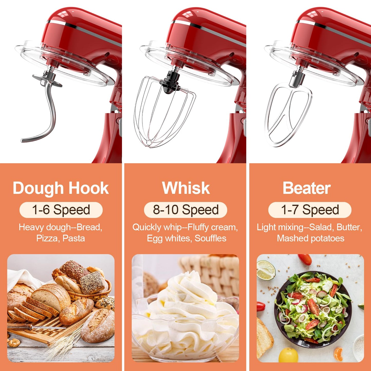 - 👌Easy-Clean & Hassle-Free : The stand mixer designed for effortless cleaning, with detachable bowls and attachments that can be quickly removed for washing. The tilt-head design mixer allows for easy installation or uninstallation of accessories.