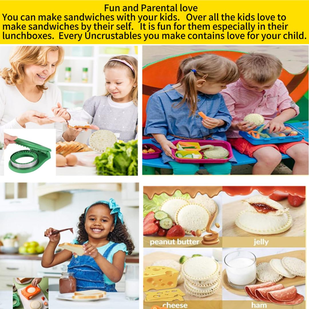 - Fun and Parental love:This Uncrustable Sandwich Maker is easy to use even a child can use this. You can make sandwiches with your kids. Over all the kids love to make sandwiches by their self. It is fun for them especially in their lunchboxes. Every Uncrustables you make contains love for your child.
