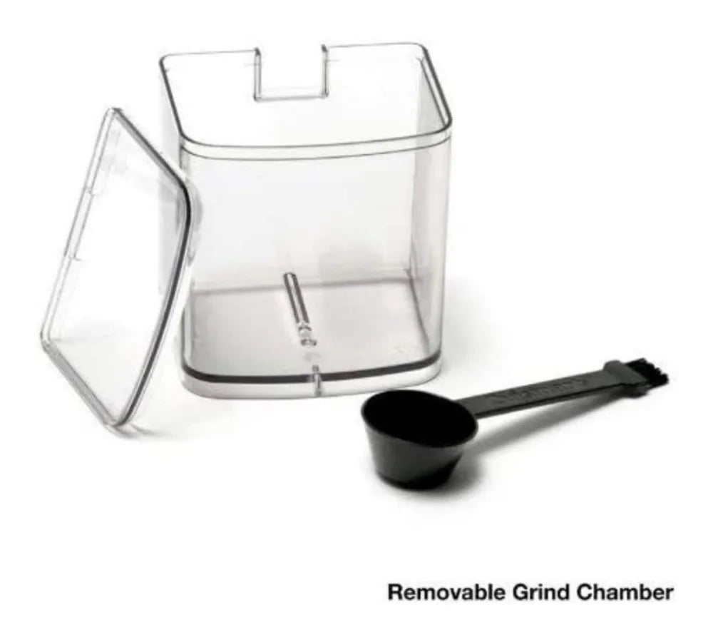 - Removable 8 oz. bean hopper