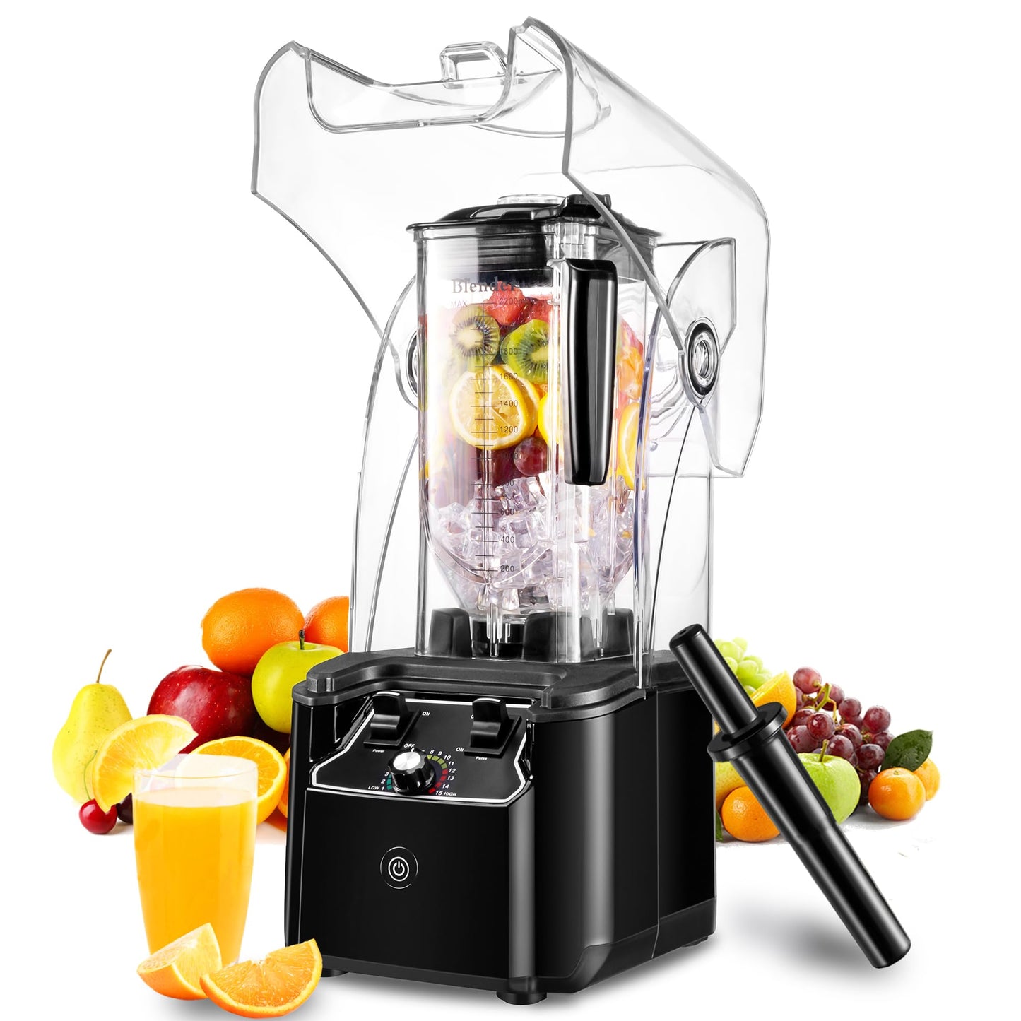 - SOUNDPROOF COVER AND FEEDING LID DESIGN: Soundproof cover is designed for limiting noise to 75dB, making the preparation of smoothie quiet enough, and also no splatter and leaking while your blending; Removable lid allows to put addtional ingredients from the hole on the top during blending and the stick help to blend ingredients through the feeding hole.
