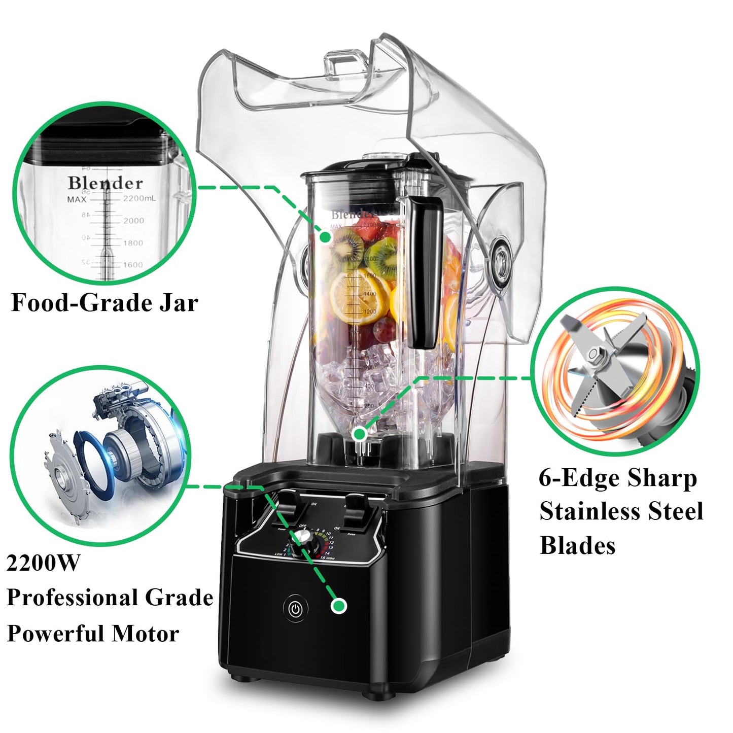 - POWERFUL 6-LEAF BLADE AND STRONG 2200W MOTOR: Senlee commercial blender is equipped with a highest 2200 watt prefessional-grade motor with a peak speed of 38000 RPM, which can blend ice, smoothie, frozen drinks, shakes, ice cream, salsa, sauce, nuts, hummus,baby food in seconds.