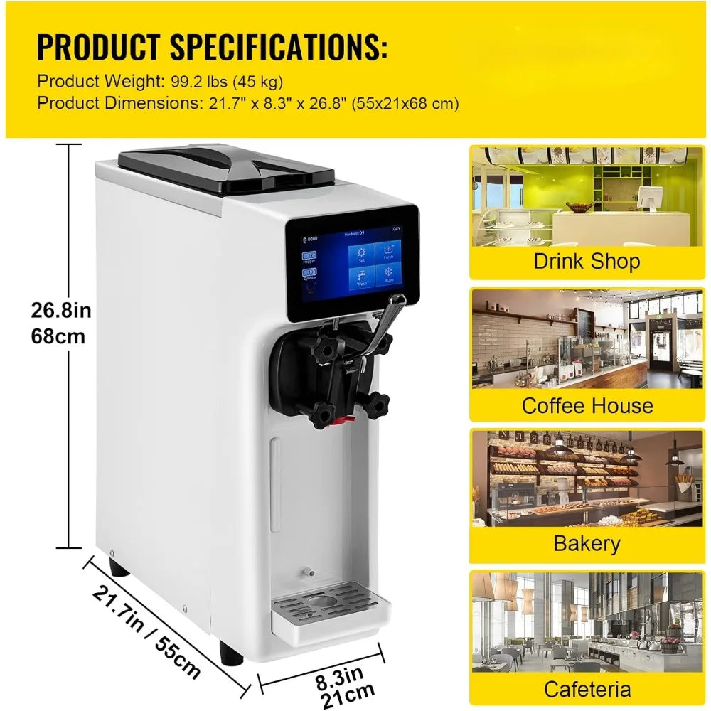 - Well-Designed for Wide Uses: Designed in a compact size of 21.7"x8.3"x26.8"(550x210x680 mm), our commercial ice cream maker can perfectly fit on your countertop. The stainless steel construction and stylish color ensure enhanced durability and an eye-pleasing appearance. This unit is widely applicable for snack bars, cafés, bakeries, fast food chains, restaurants, buffets, etc.