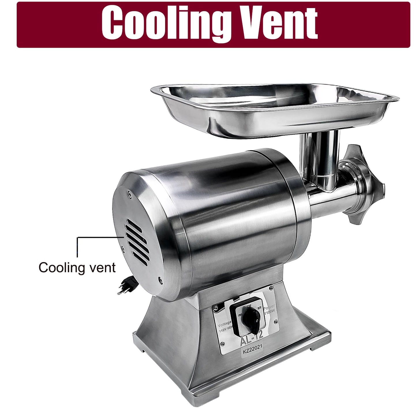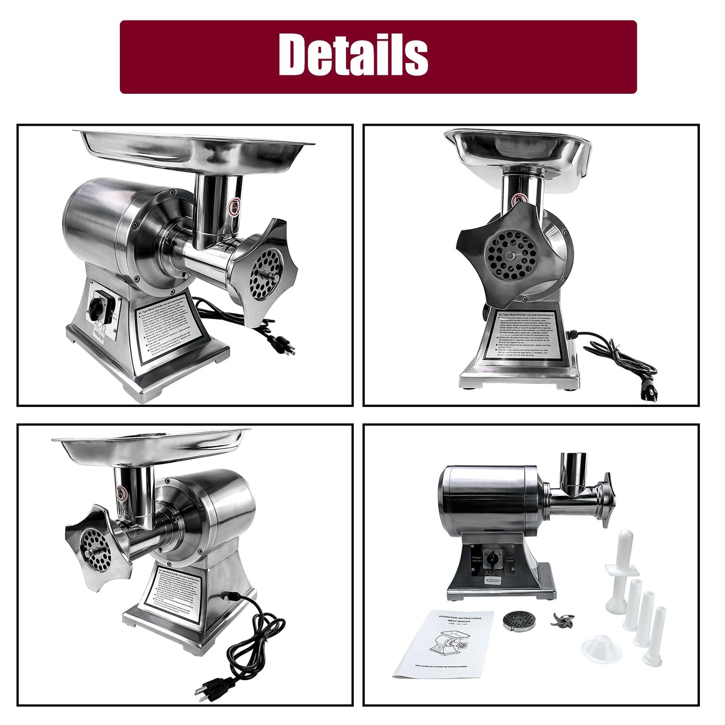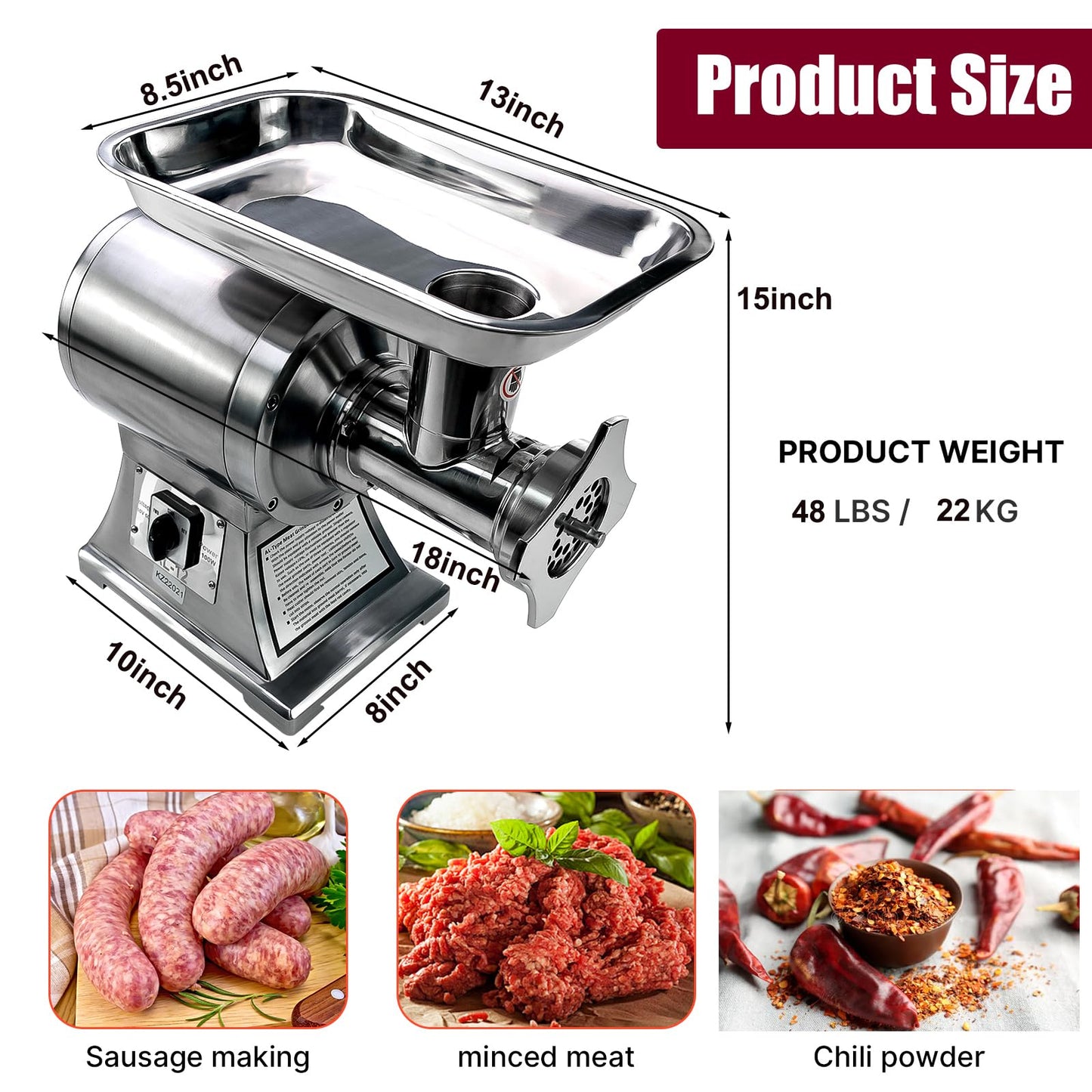 - 1100W Powerful Meat Grinder: The electric meat grinder is equipped with a powerful high-quality 1100W Max all-copper motor, when it is working, the grinder can reach a speed of 193r/min and grind approximately up to 250 kg/550lbs of meat per hour, which can be applied to versatile ingredients such as small chicken bones and fish bones. Greatly reducing the time to grind large quantities of meat