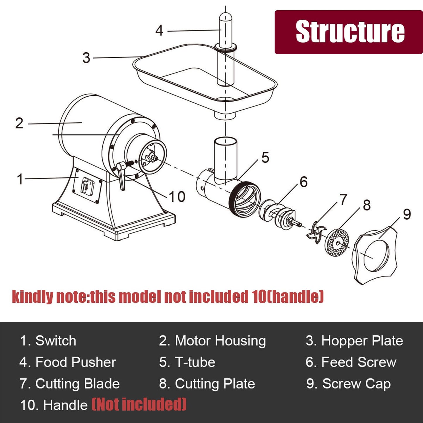 - Easy to Clean: All accessories of the meat grinder are removable and very easy to clean. Please rinse and wipe clean manually with warm water (<50°C), not hot water. Note: Please do not put them in the dishwasher