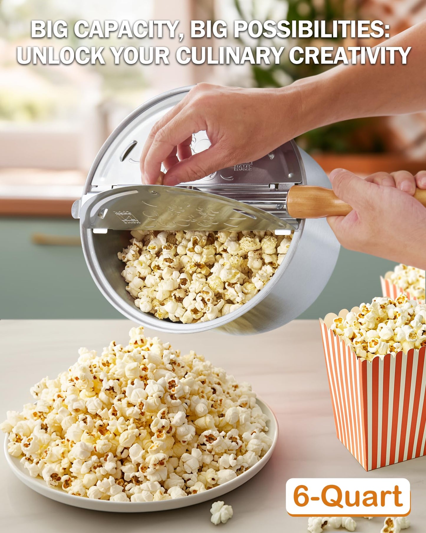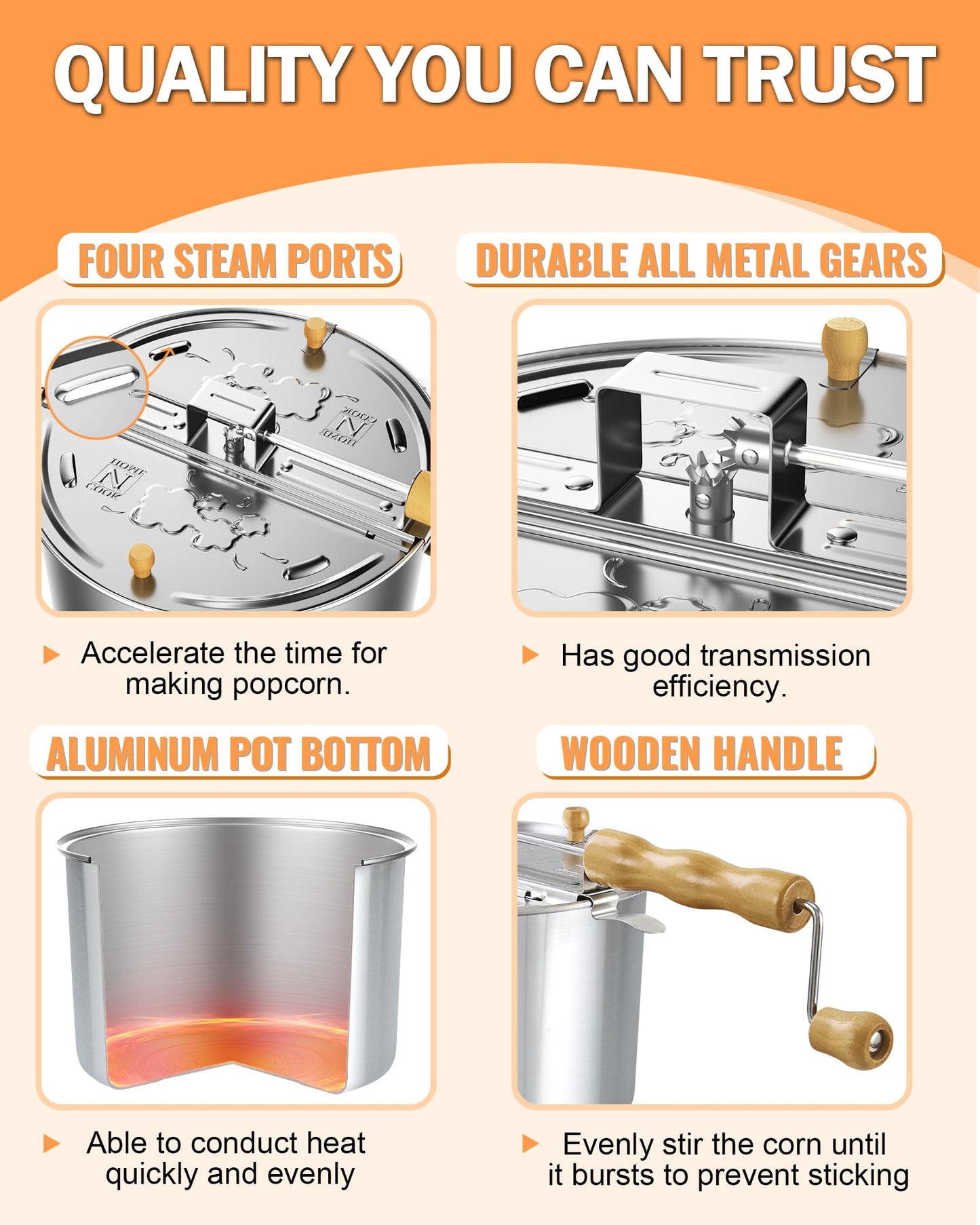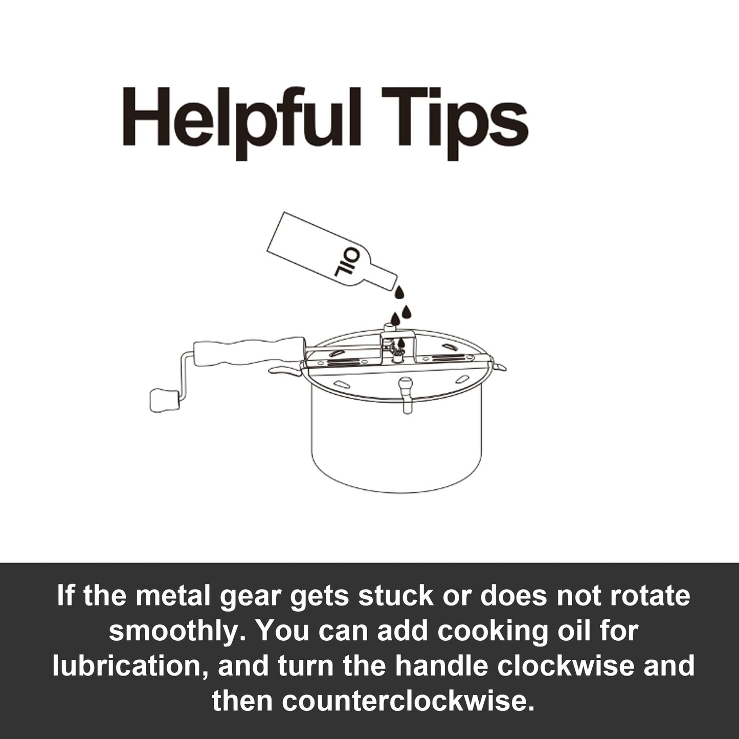 - Durable All-Metal Gears: The all-metal gears ensure efficient power transfer, heating and stirring each corn kernel quickly to prevent sticking or burning