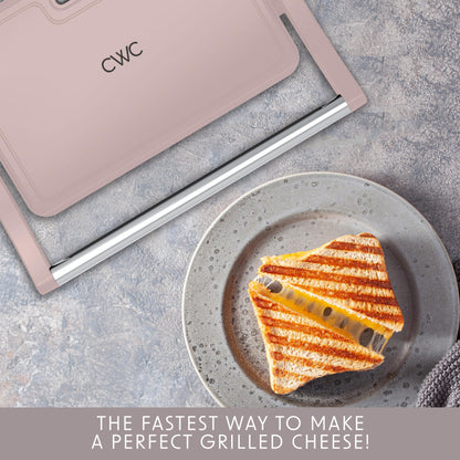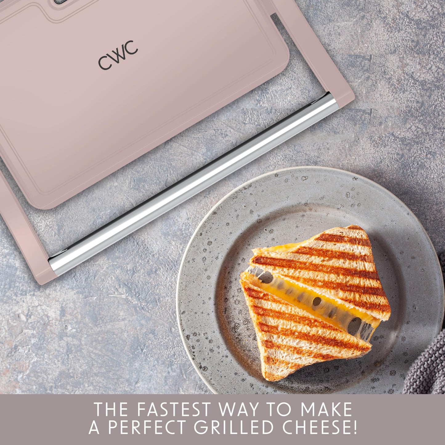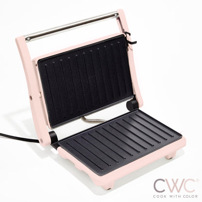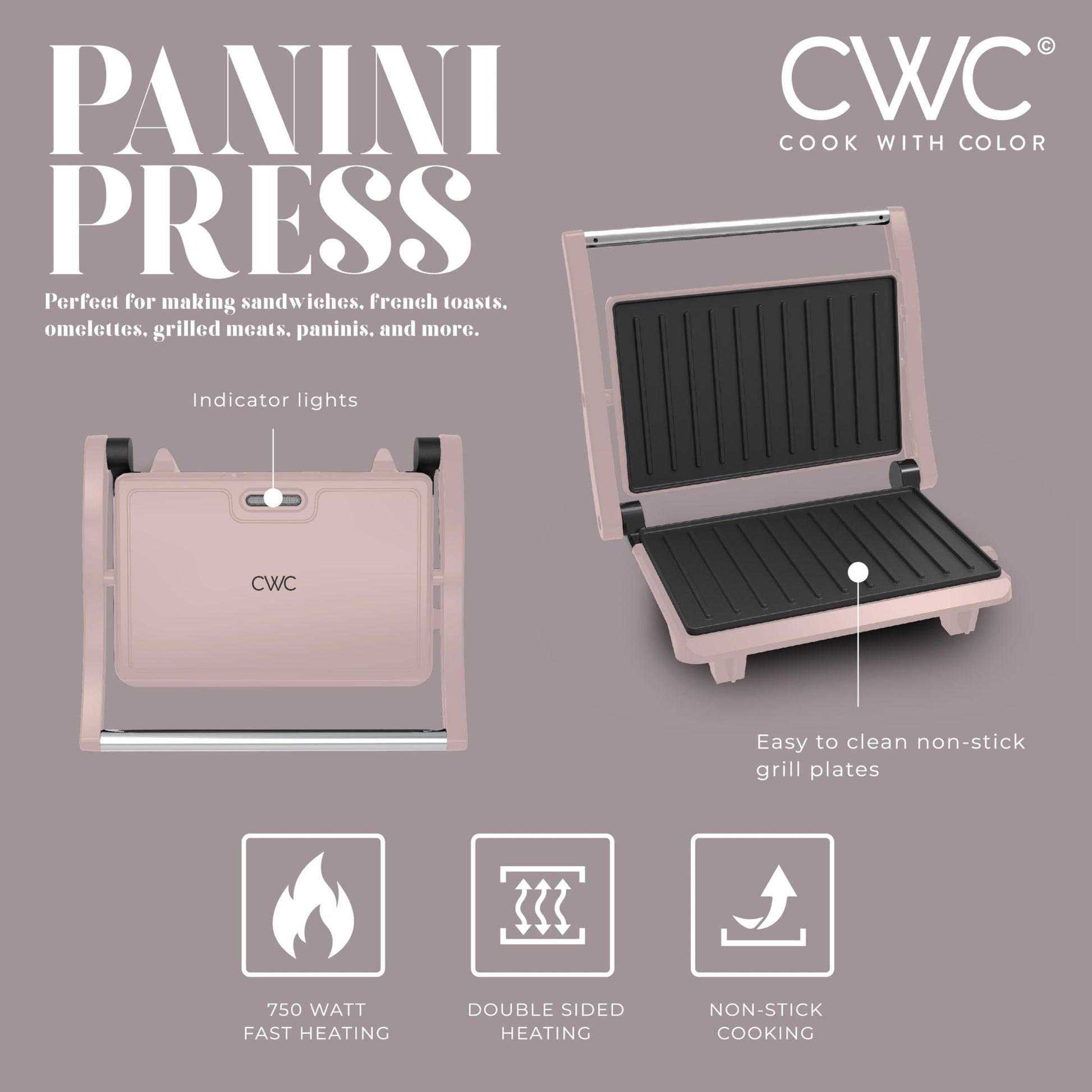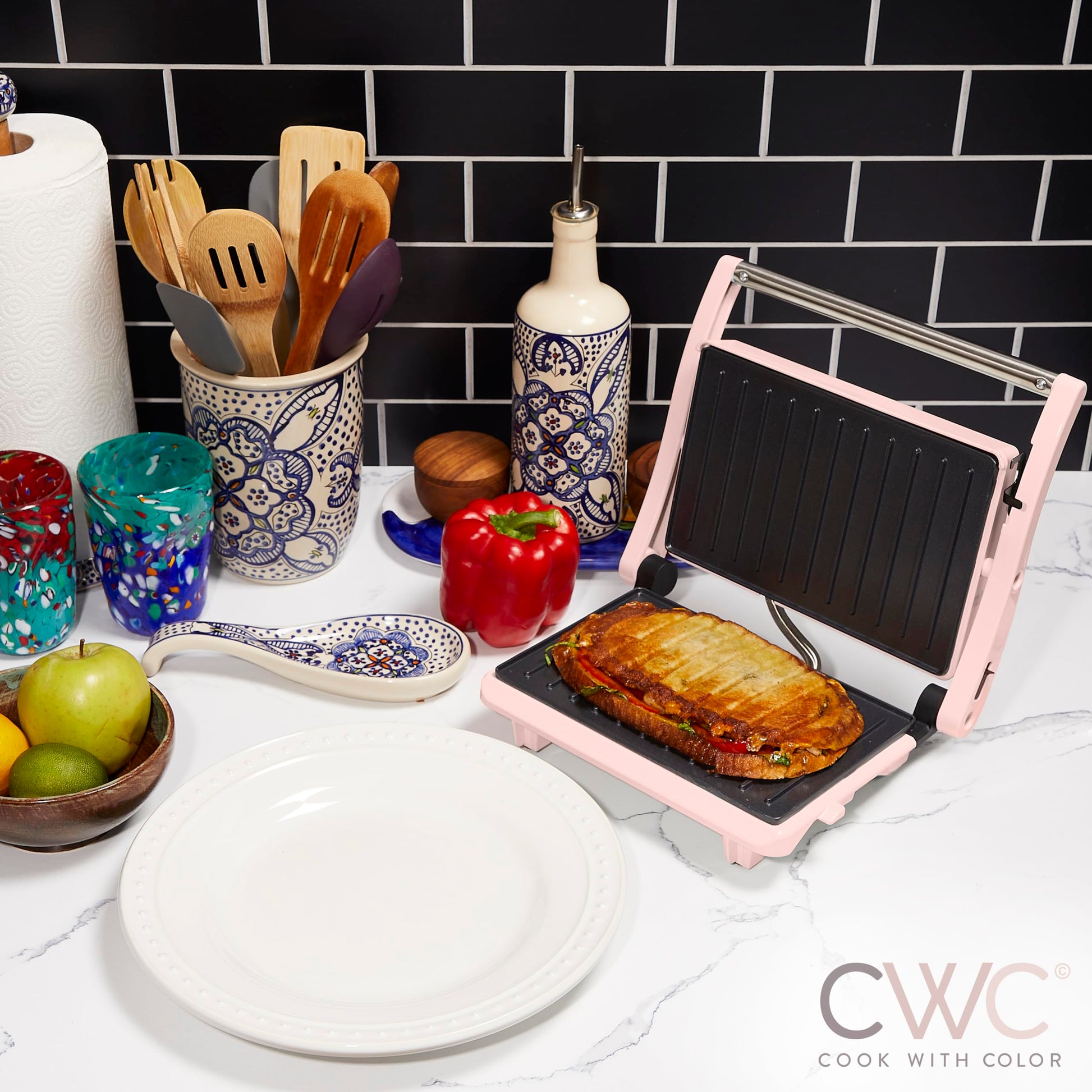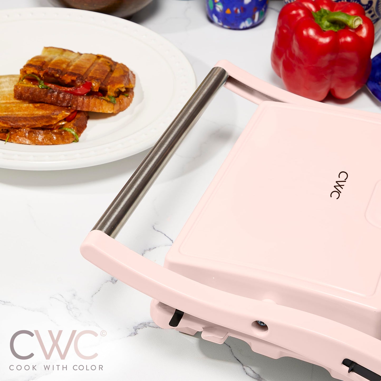 COOK WITH COLOR Panini Maker: 2-Slice Press Grill, 760W Power, Non-Stick Plates, Cool Touch Handle, Compact Design, Fast Cooking - Ideal for Delicious Paninis, Pink