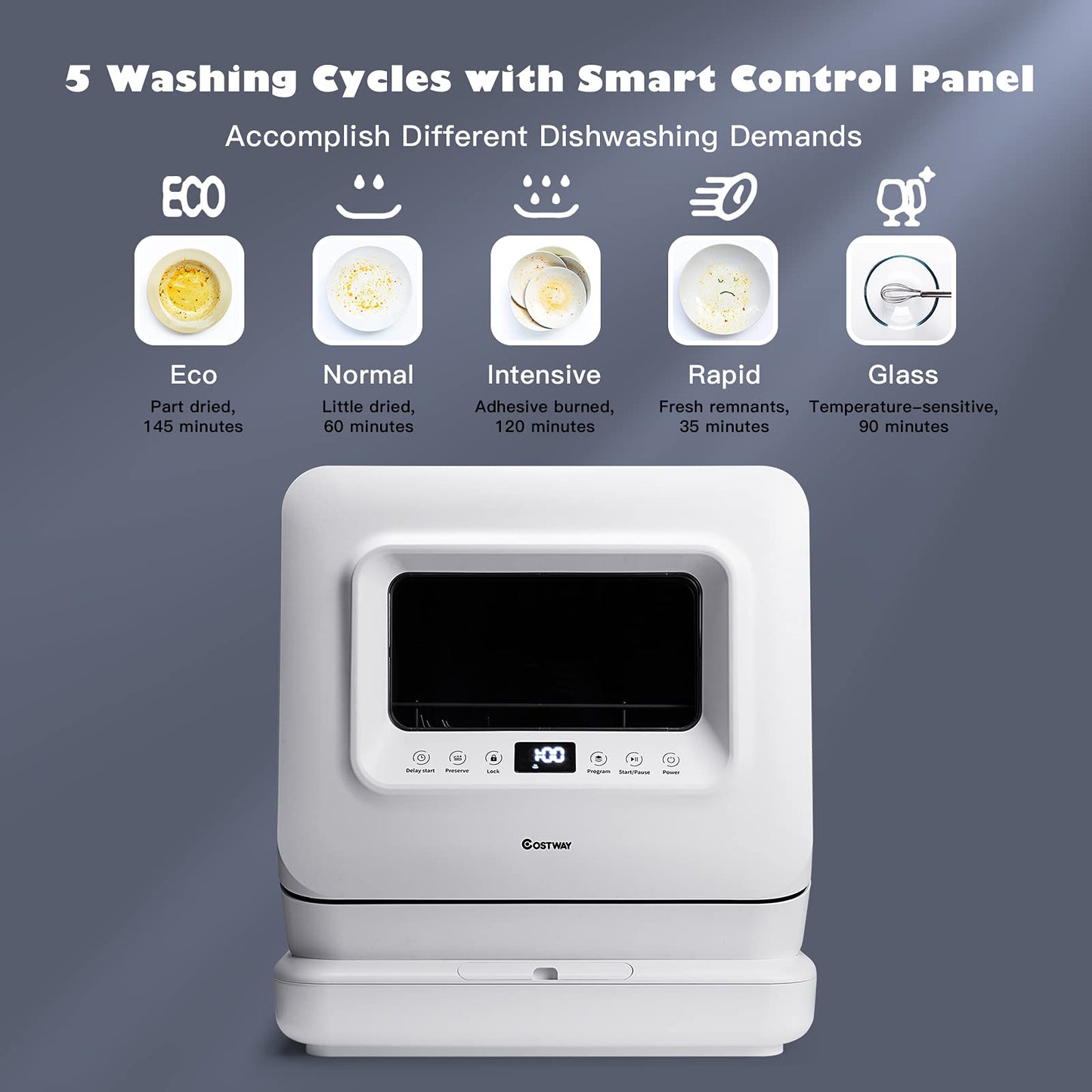 COSTWAY Portable Countertop Dishwasher, Compact Dishwasher with 7.5 L Built-in Water Tank, 360° Dual Spray Arms, 5 Washing Programs, Air-Dry Function, Child Lock, Mini Dishwasher for Apartment, RV