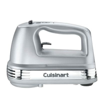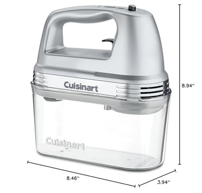 Introducing a hand mixer that's as easy to put away as it is to operate. The Cuisinart Power Advantage Plus 9 Speed Hand Mixer performs any task a recipe calls for, and then tucks into its own storage case. Once it has mixed heavy batters, whipped up fluffy meringues and kneaded homemade bread dough, just clean it up and put it away. Extra long beaters, chef's whisk, and dough hooks fit into a clear case, and the mixer snaps on top. Plenty of power, perfect control, and compact storage. That's a mixer anyone can love. Features: 220 watts of power with automatic feedback|SmoothStart™ feature with 3 low mixing speeds eliminates splattering|One-step power switch with 9-speed LED display|Sturdy snap-on case to store mixer and accessories|Includes beaters chef’s whisk dough hooks and spatula|Recipe book|Limited 3-year warranty|BPA Free
