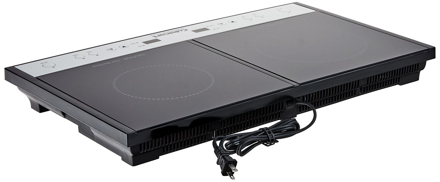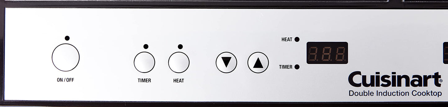 Details: The Double Induction Cooktop offers the ultimate in cooking flexibility, adding two induction burners to any kitchen, or any place without a kitchen! Induction technology offers an exceptional cooking experience, with instant heat-up and consistent, precise heat throughout cooking. Each burner has its own heat setting control, 150-minute timer and On/Off switch. The smooth glass surface looks sleek and wipes clean. It's ideal for entertaining and holidays when cooking for a crowd. And its compact and portable size makes it ideal for small spaces without a kitchen, such as dorm rooms, boats, patios or RVs. This is a versatile and powerful tool that's a great addition to any kitchen - big or small! Refer instruction manual before use. Features: Induction technology for fastest heat-up|Uses up to 70% less energy than conventional cooktops|Bright LED displays|Left burner: on/off 8 heat settings 150-minute timer|Right burner: on/off 5 heat settings 150-minute timer|Heat shuts off automatically 30 seconds after pan is lifted off|Safe exhaust-free and flame-free cooking|Even heating – no hot spots|Must use with induction-ready cookware*|Limited Five Year Motor Warranty *Cast Iron 18/0 stainless steel