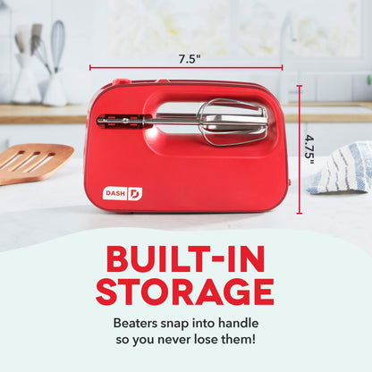 Dash SmartStore™ Compact Hand Mixer Electric for Whipping + Mixing Cookies, Brownies, Cakes, Dough, Batters, Meringues & More, 3 Speed, 150-Watt - Red