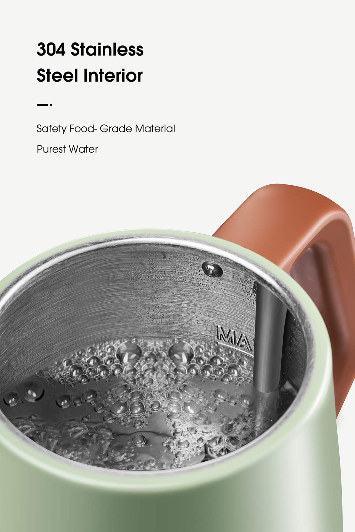- 【Safety 304 Stainless Steel Interior】 ~ The electric kettle is constructed in 304 stainless steel body with gooseneck spout,and steam lid. Food-grade stainless steel tea kettle gives you a great lifespan, remarkable durability, and perfect insulation, as well as the purest water without chemical hazard.