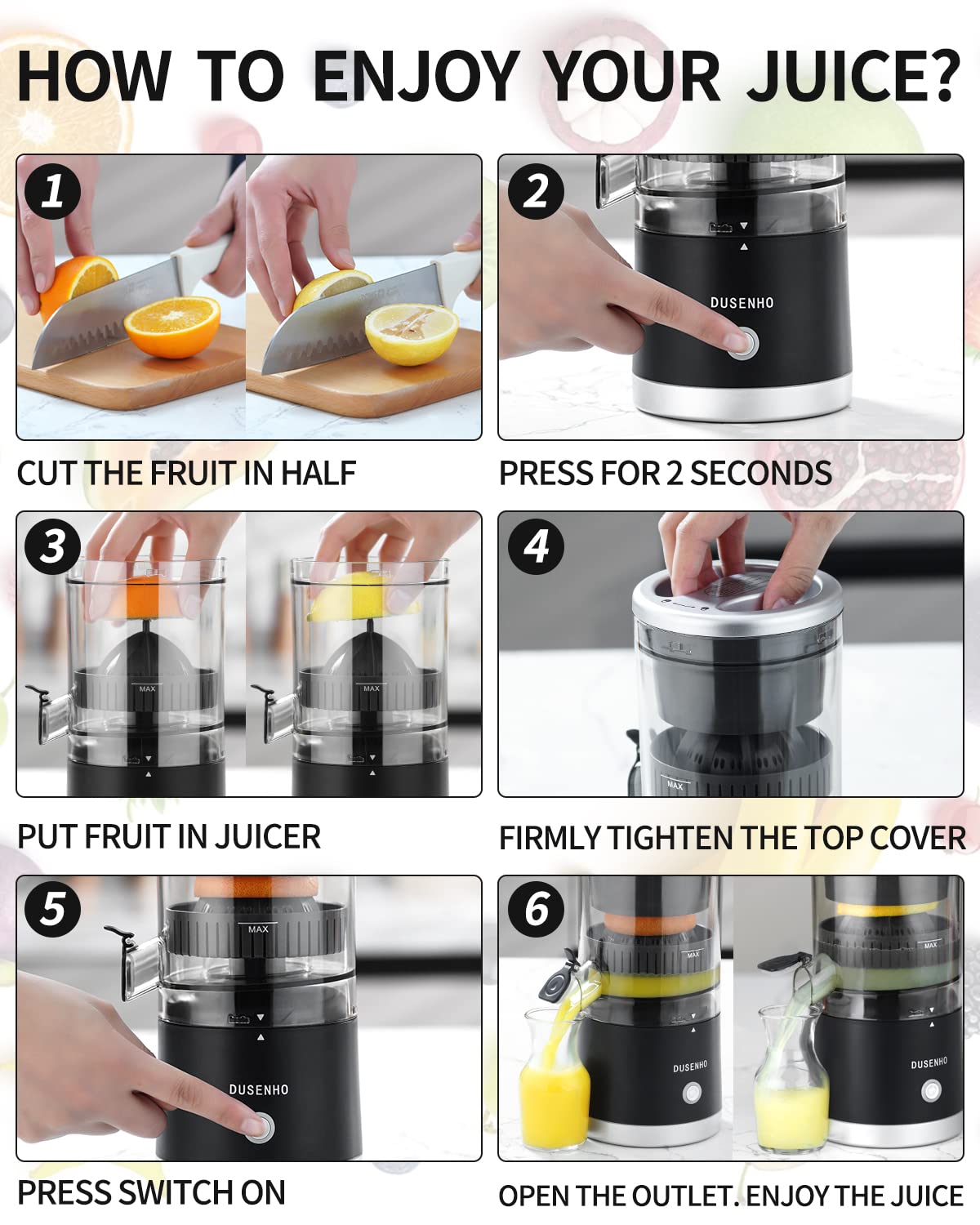 DUSENHO,Electric Juicer Rechargeable - Citrus Juicer Machines with USB and Cleaning Brush Portable Juicer for Orange, Lemon, Grapefruit