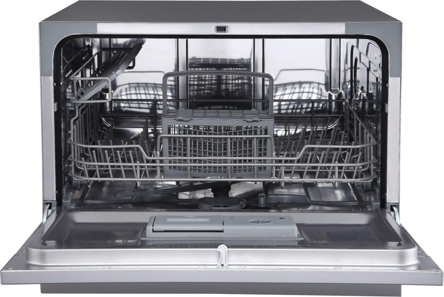 - This compact countertop dishwasher has a low profile that fits comfortably under most cabinetry without permanent installation required
