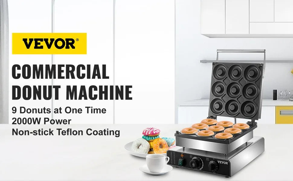 Electric Donut Maker, 9 Holes Commercial Donut Machine, 2000W, Double-Sided Heating, with Non-stick Teflon Coating