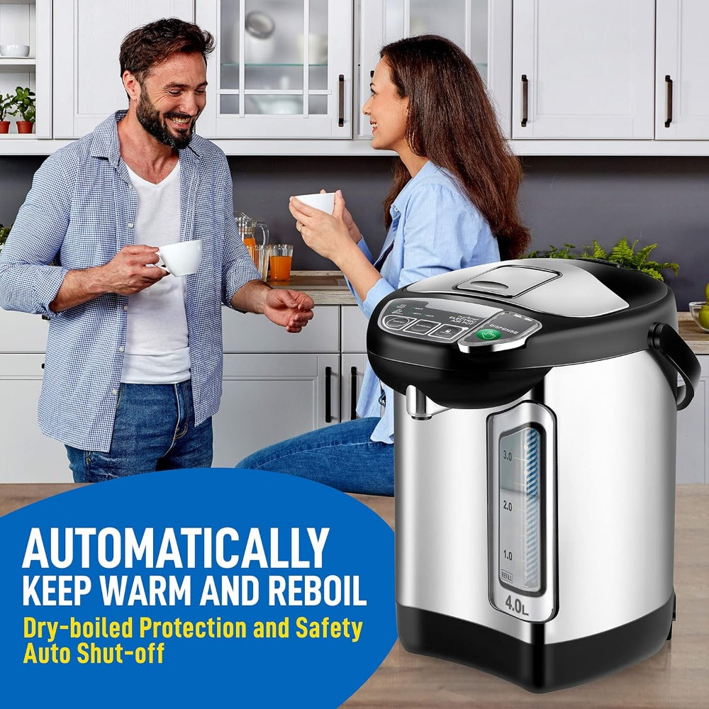 Electric Water Boiler and Warmer - 4L Stainless Steel Hot Water Dispenser w/ Rotating Base, Auto Shut Off, Safety Lock,Household