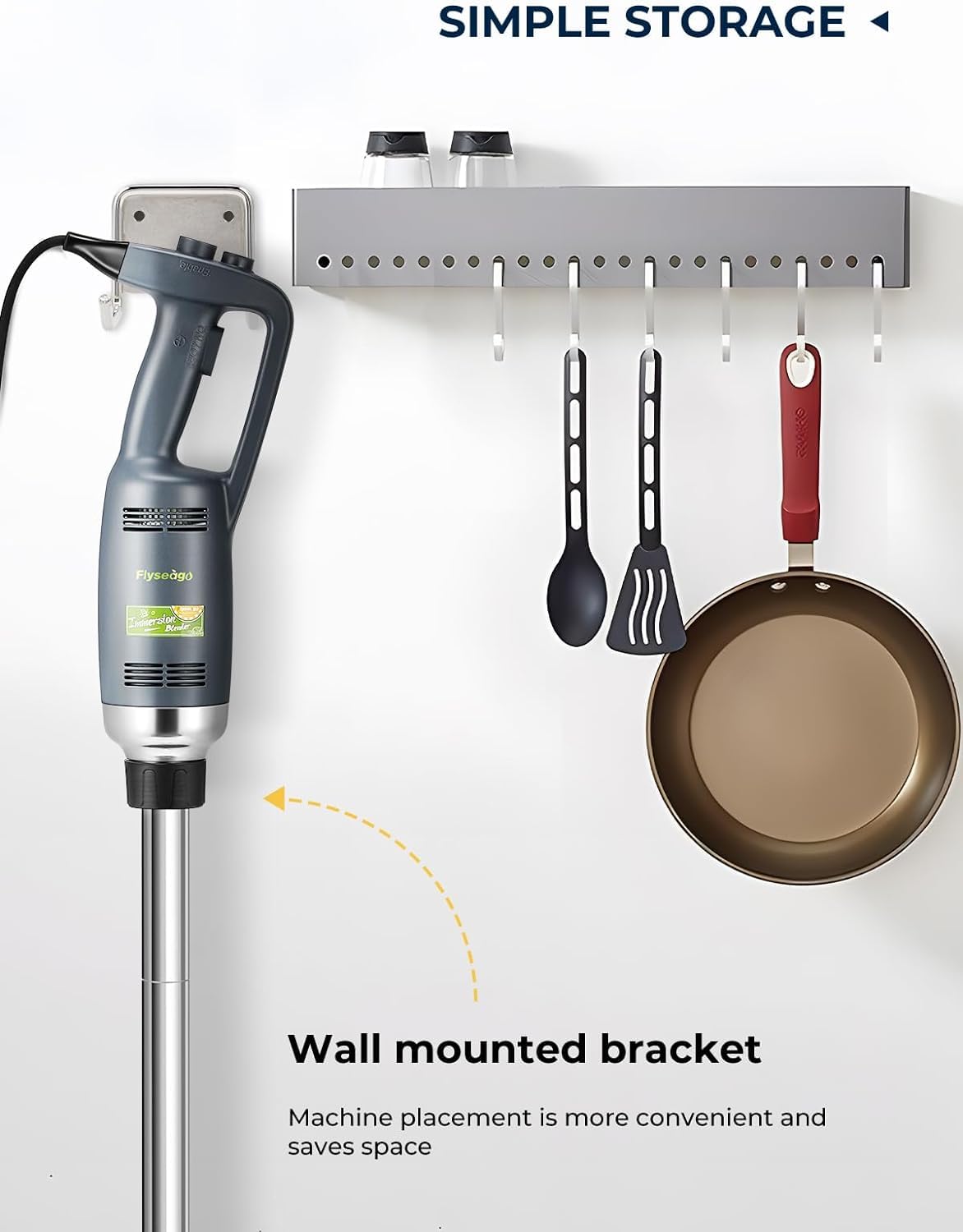 - Complete Accessories: 1. Our commercial immersion blender with a food grade thickened stainless steel 20'' stirring stick, allowing the deeper reaching into containers. It can batch mix 50 gallons of food at once, greatly improving processing efficiency. 2. With a removal tool to make blade disassembly easier. The 3-leaf blade ensures smoother mixing and is not easy to jam. 3. With a wall mounand bracket, which is more convenient to place the machine and saves space