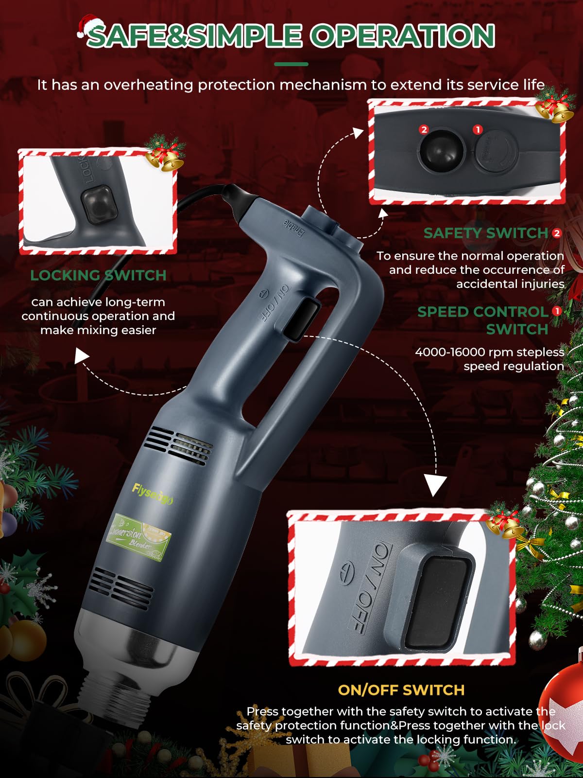 Flyseago Commercial Immersion Blender Hand held Blenders Heavy Duty Variable Speed Mixer 4000-16000RPM with 20-Inch Removable Shaft 50-Gallon Capacity 500W Multifunction Pro Electric Stick Emulsifier