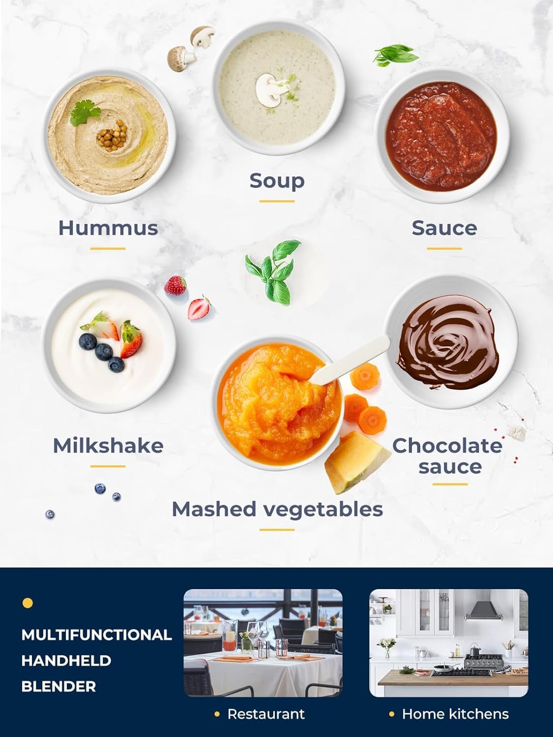 - Multifunctional Blender: Our professional immersion blender is not only suitable for mixing all kinds of food, including vegetables, fruits, meats, various sauces and soups, but also for soap making, cosmetic emulsification and so on. Widely used in restaurants, home kitchens, hotels, cafeterias, soap makers, etc., effectively accelerating batch work progress. And we have a professional after-sales team to solve your problems, as well as a one-year warranty, making your shopping worry free