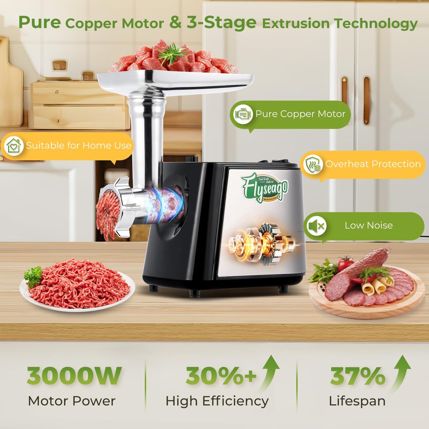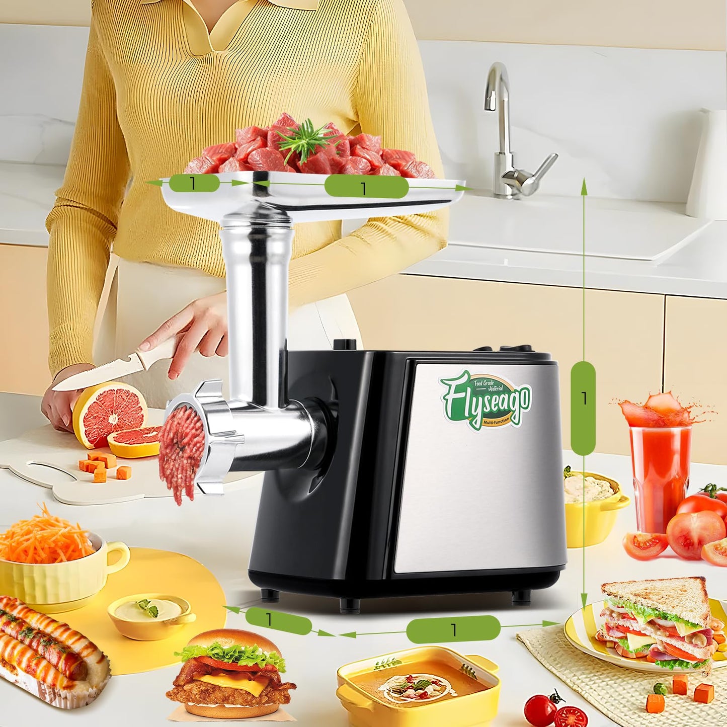 Flyseago Electric Meat Grinder, Cheese Grater 3000W Multifunctional Meat Grinder with Juicer, Vegetable Cutter Veggie Slicer, Shredder, Meat Chopper, Sausage Stuffer, Kubbe Kit, Home Use