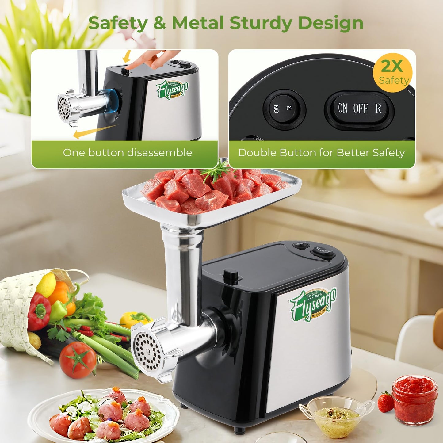 - 3-Stage Extrusion Design: Flayseago electric meat grinder applies 3-Stage Extrusion Design, so the commercial grinder meat can grind meat in three steps of spiral extrusion, perfectly protect the fiber of the meat and keep it more healthy and tasty