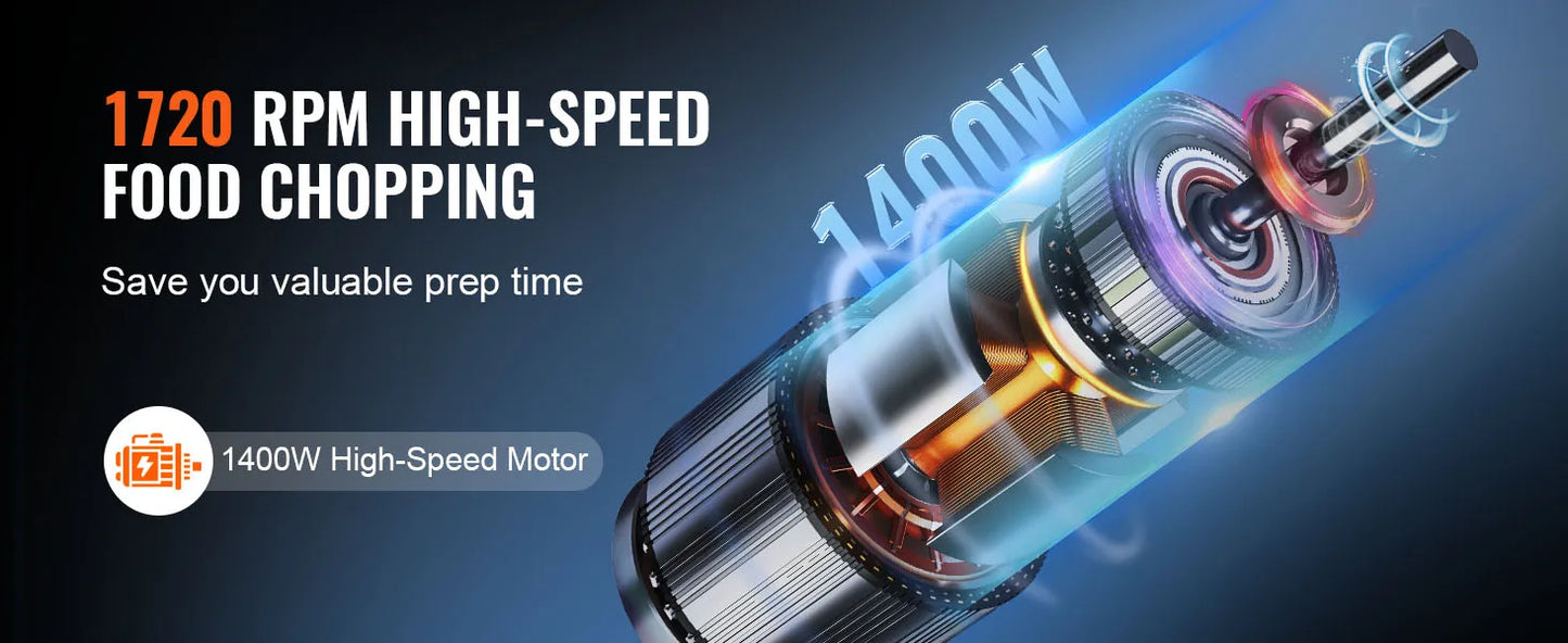 With our tough and razor-sharp S-shaped curved blade and an average rotation speed of 1720 r/min, you can swiftly chop your ingredients, saving you precious prep time. Say goodbye to lengthy meal preparations and hello to convenience.