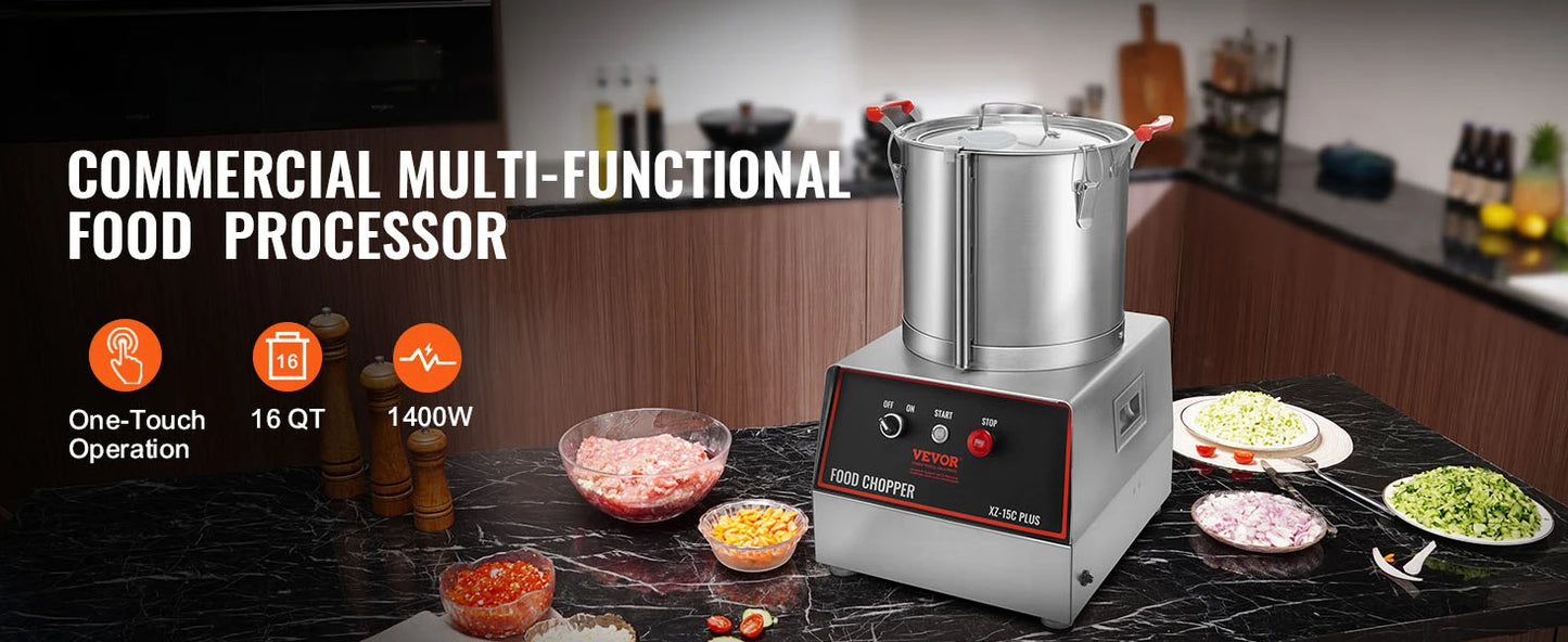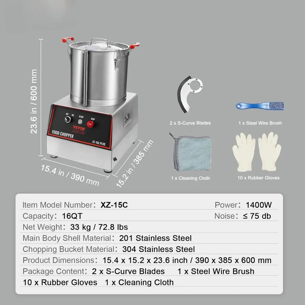 Food Processor & Vegetable Chopper, 16 Quart,1400W Food-Grade Stainless Steel Food Processor Chopper with 2 Extra S-Curve Blades