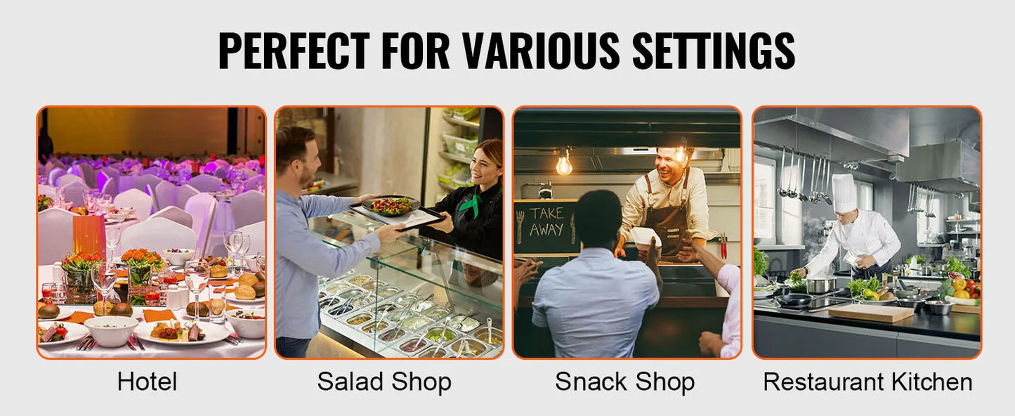 Experience versatility and convenience like never before with our compact fruit and vegetable processor. With a compact and exquisite appearance, it can be easily stored without taking up space, suitable for hotels, salad stores, snack bars, restaurant backrooms, and other places.