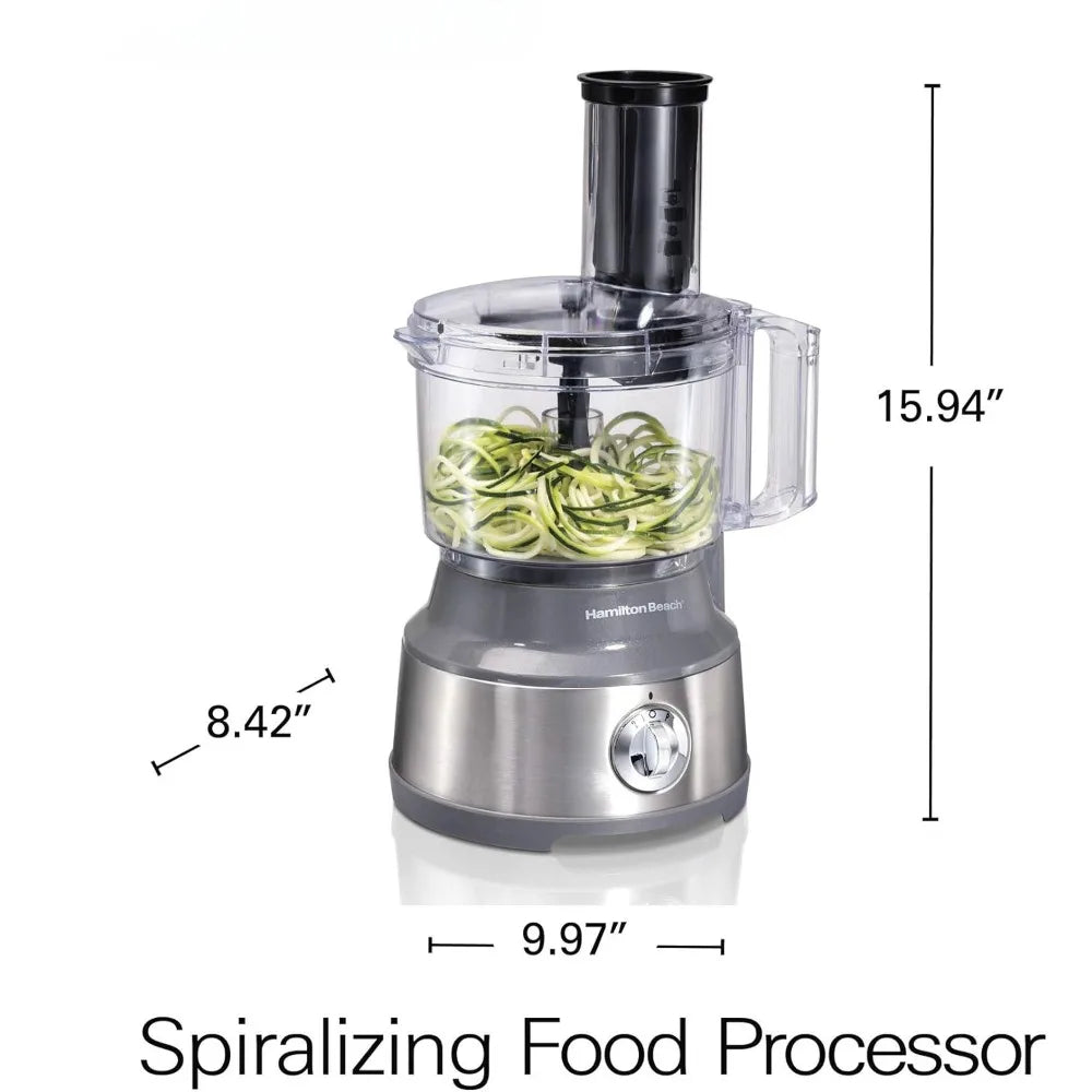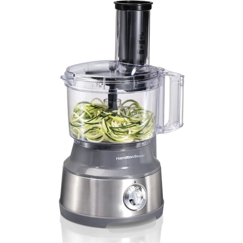 Food Processor & Vegetable Chopper for Slicing, Shredding, Mincing, and Puree, 10 Cups + Veggie Spiralizer, Grey and Stainless
