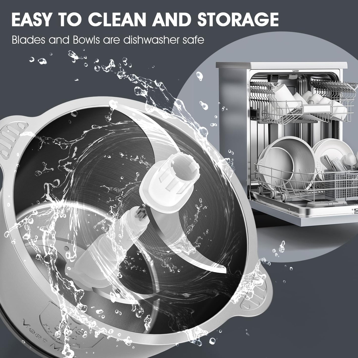 - 【Easy cleaning and storage】The parts of the food processor are removable and easy to clean. Bowls, blade,lid all are dishwasher safe. This product does not contain this BPA free, can be safely used in the family use or baby food. The food processing bowls are stacked storage, which will save extra space for your kitchen.