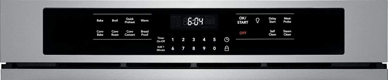 Details: True Convection Get faster, more even multi-rack baking with a powerful convection fan and third heating element that evenly circulates hot air throughout the oven. Effortless Temperature Probe The Effortless Temperature Probe detects and alerts when the desired finished cooking temperature has been reached and automatically switches to the keep warm setting. Smudge-Proof Stainless Steel Stainless steel easily resists fingerprints and cleans flawlessly. Touch Control Panel This enhanced glass-like capacitive touch control panel is easier to use and clean, with a scratch resistant acrylic surface and white LEDs. Self-Cleaning Your oven cleans itself - so you don't have to. Self clean options available in 2, 3, and 4-hour cycles. Quick Preheat Preheat in just a few minutes - no long wait so you can prepare dinner in a breeze. Steam Clean A 30-minute light oven cleaning that's chemical-free, odor-free, and fast. Vari-Broil Temperature Control Vari-Broil Temperature Control is a broiling system which allows you choose between two heat levels for more precise cooking. Ready-Select Controls Easily select options or control cooking temperature with our easy-to-use controls. Large Capacity Oven Our largest oven yet allows you to cook more at once with 5.1 cubic feet of oven capacity. Glide Rack Rack easily glides in and out allowing you to access dishes from your oven. Oven Rack Handles Oven racks are designed with space for you to easily pull out the racks, even when wearing an oven mitt.