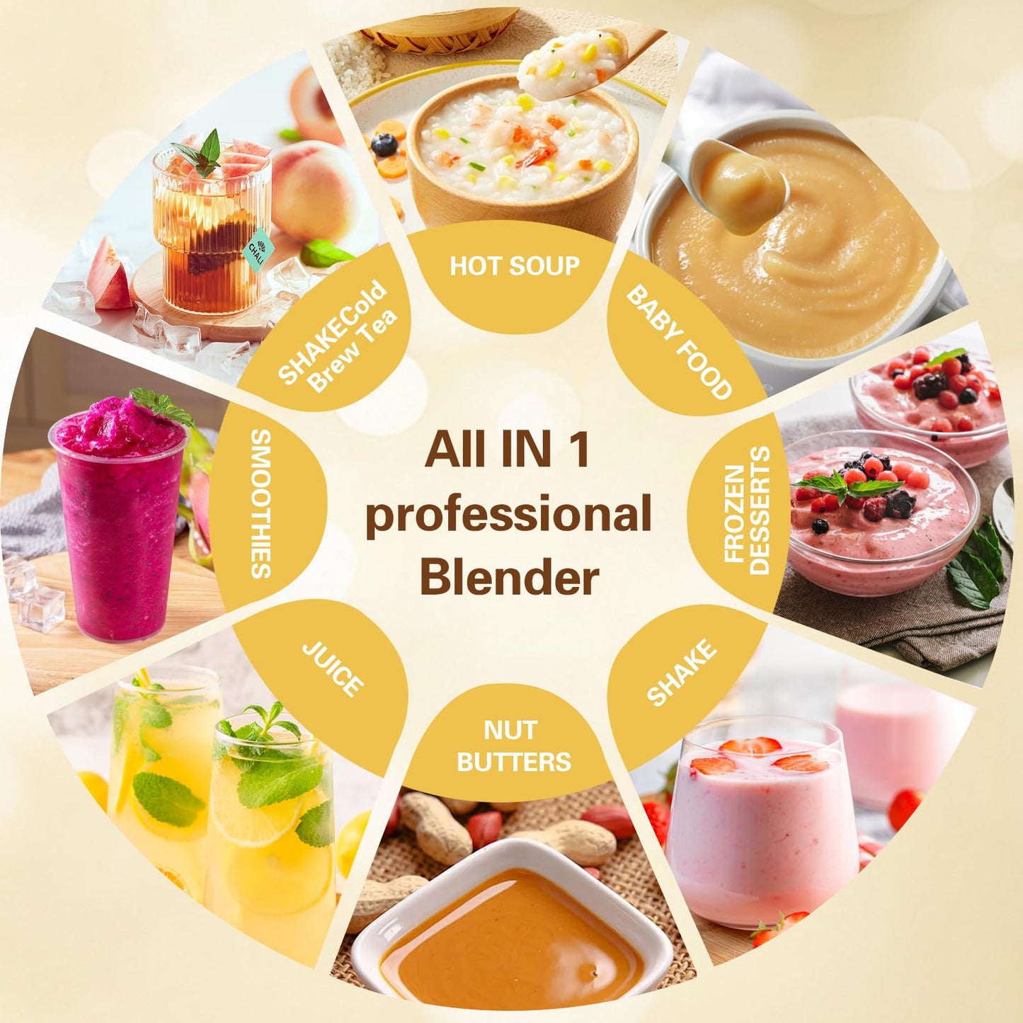 - 【9.5"D x 9"W x 19.7"H heavy duty and tall】FULIYE heavy duty blender is very tall 19.8" inch !! please check your counter if it exceeds the height. FULIYTE smoothie blender is designed to do not only the basic functions that a household blender can perform, but also can pass as food processor and juice maker